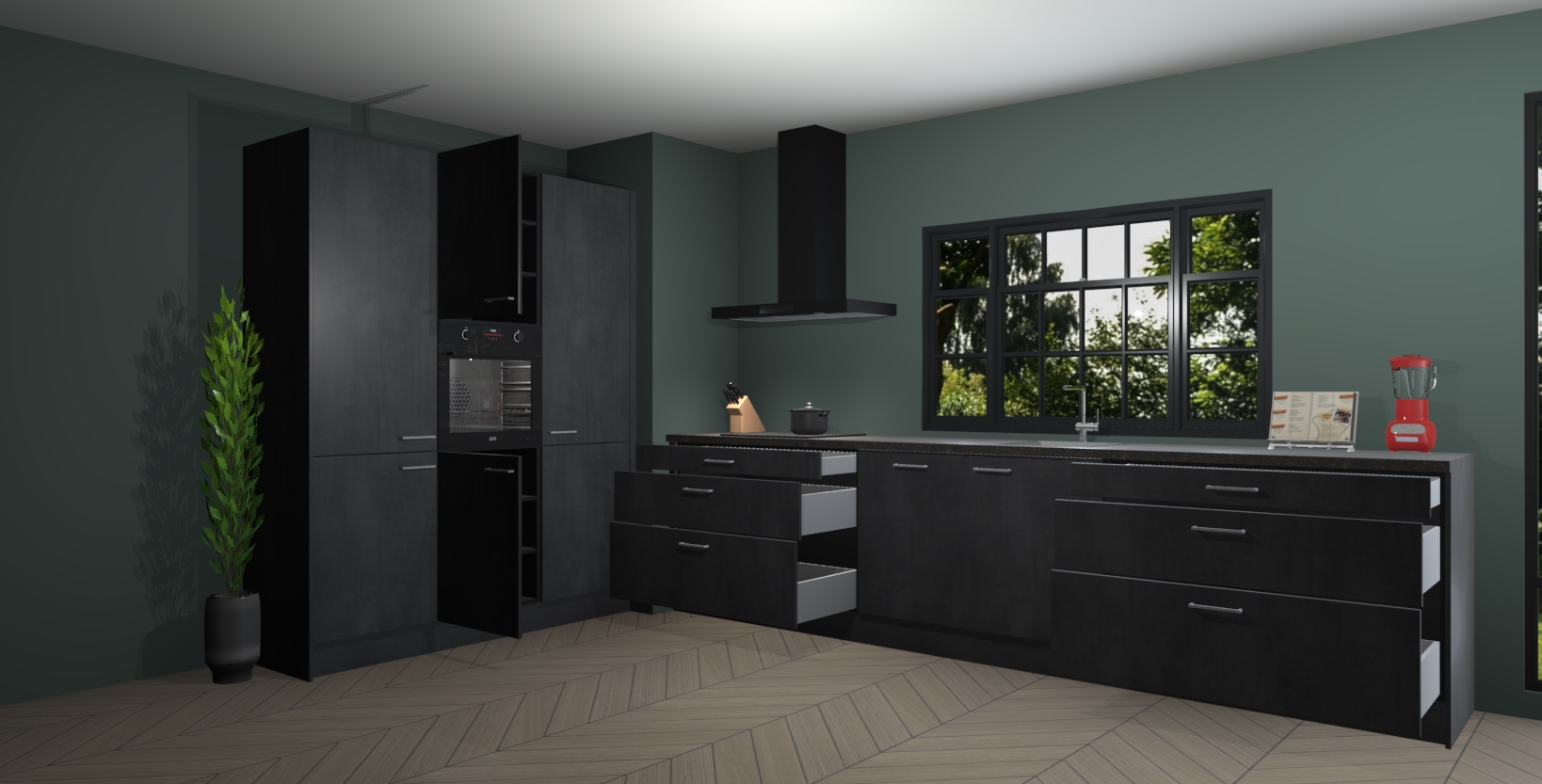 Maak van uw keuken een plek waar u trots op bent - trakteer uzelf vandaag nog op de kwaliteit en elegantie van de Beton zwarte keuken Marseille!