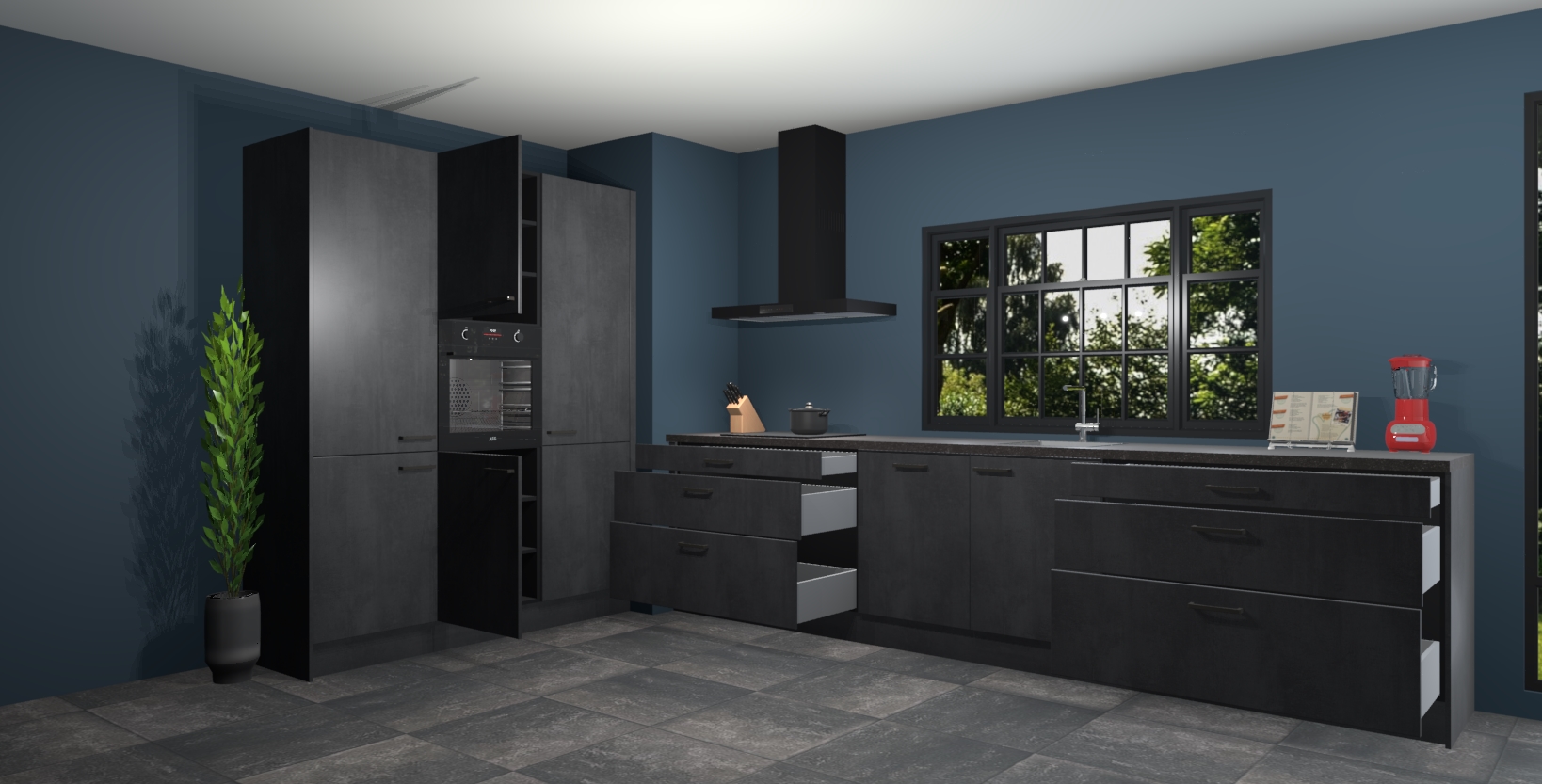 Maak van uw keuken een plek waar u trots op bent - trakteer uzelf vandaag nog op de kwaliteit en elegantie van de Beton zwarte keuken Marseille!