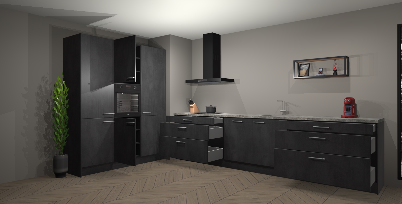 Maak van uw keuken een plek waar u trots op bent - trakteer uzelf vandaag nog op de kwaliteit en elegantie van de Beton zwarte keuken Marseille!