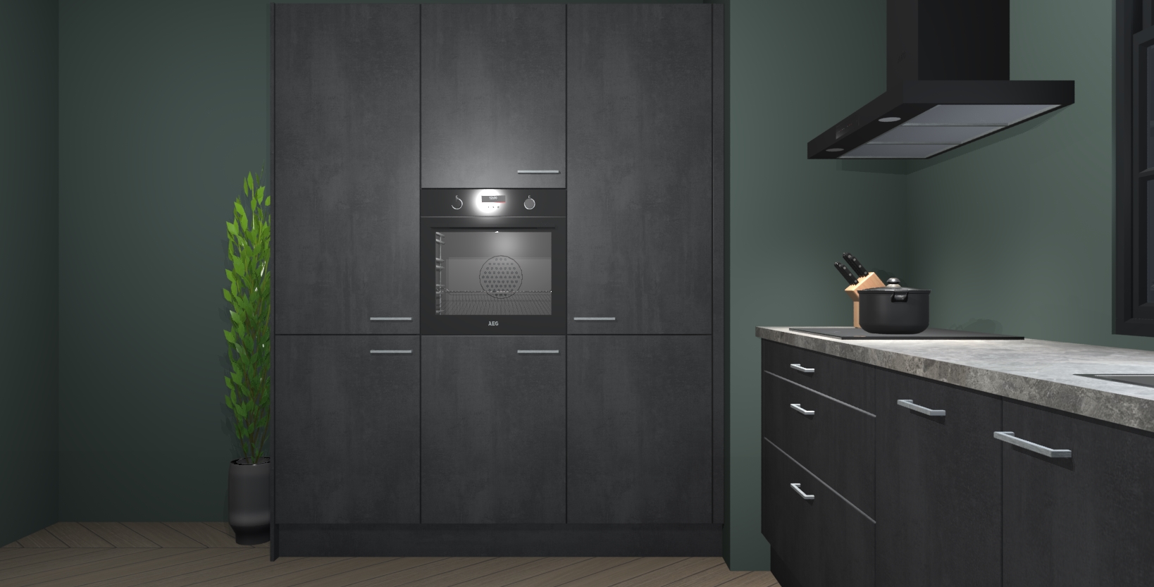 De softclose deuren openen en sluiten is ook heel eenvoudig - geniet van een moeiteloze keukenervaring, zelfs als er kinderen rondlopen. Voor extra gemak bij het plaatsen van uw bestelling bieden we ook een upgrade naar een kookplaat met geïntegreerde afzuiging.