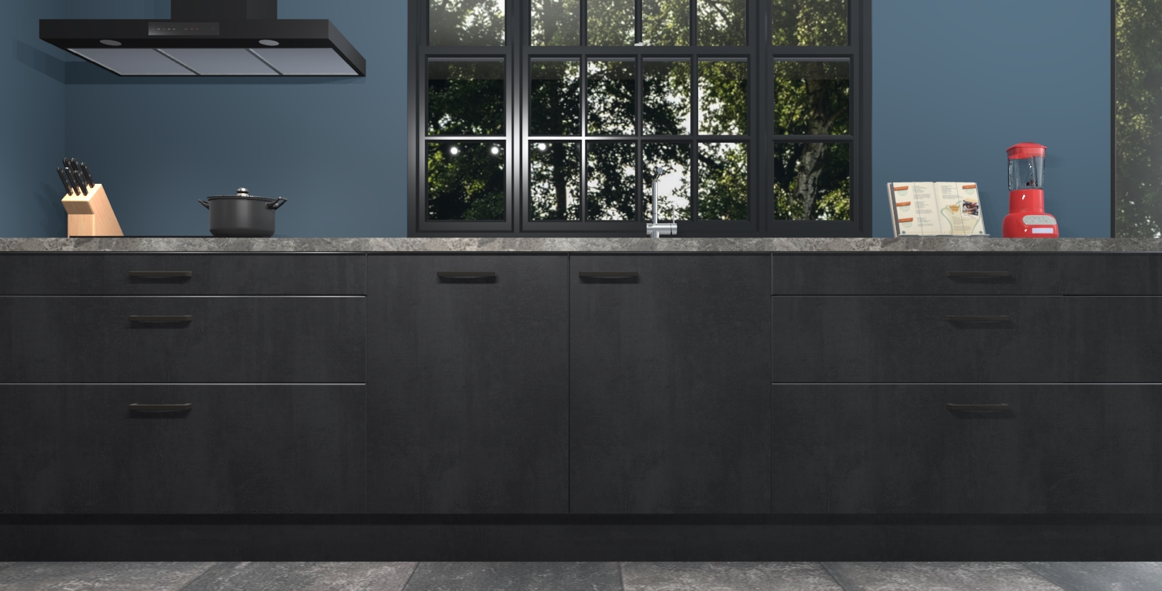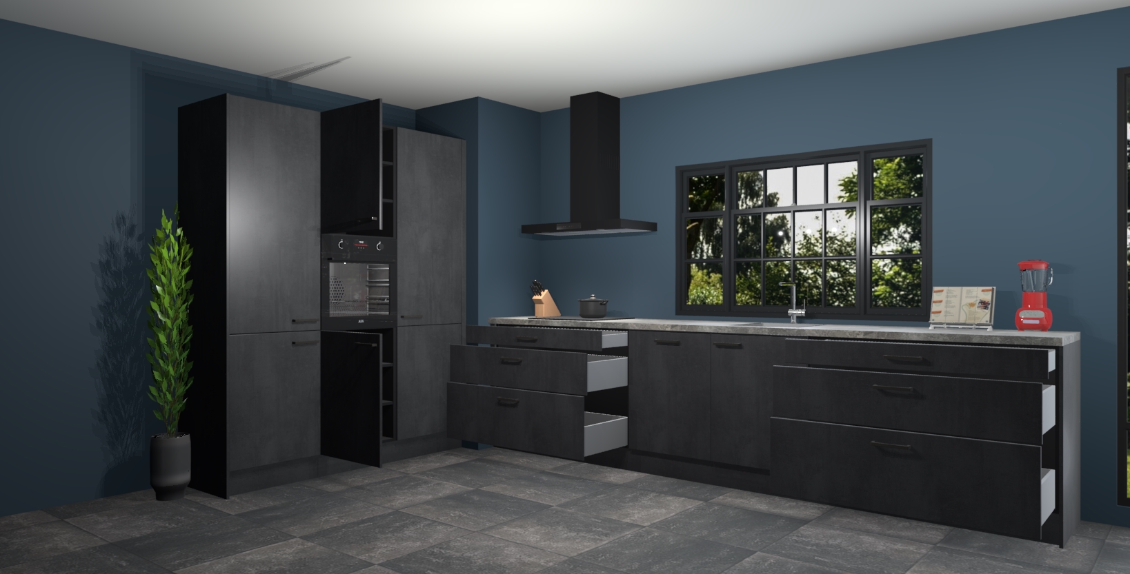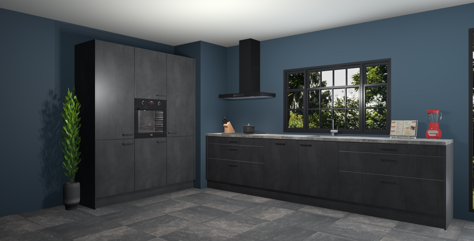 Maak van uw keuken een plek waar u trots op bent - trakteer uzelf vandaag nog op de kwaliteit en elegantie van de Beton zwarte keuken Marseille!