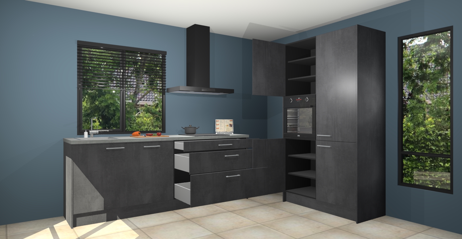Wacht niet langer en bestel nu uw persoonlijke Beton zwarte keuken Monaco! Ongeacht beperkt budget of eindeloze mogelijkheden; met ons maakt u verstandig, overtuigend én goedkoop uw droomkeuken waar.