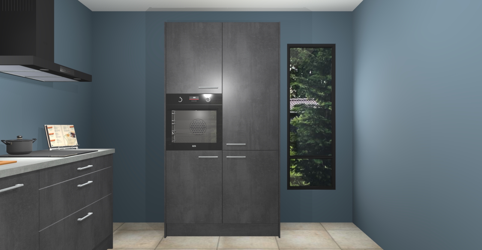 De setting is compleet gemaakt door de vijf inbouwapparaten: wanneer u gaat bestellen kunt u upgraden naar AEG-apparaten als oven, inductieplaat, afzuigkap, vaatwasser en koelkast. Kiest u voor onze Beton zwarte keuken Monaco, dan weet u zeker dat u te maken heeft met Duitse kwaliteit. Bovendien is er altijd sprake van een lage prijs en profiteren we aantrekkelijk leveringstermijn: die bedraagt slechts 7 weken ! Om het extra makkelijk te maken worden de keukenkasten reeds voorgemonteerd geleverd.