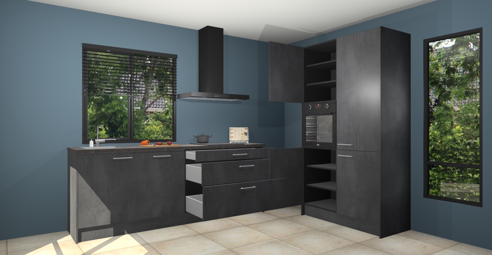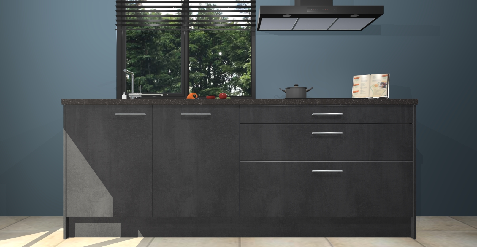 Wacht niet langer en bestel nu uw persoonlijke Beton zwarte keuken Monaco! Ongeacht beperkt budget of eindeloze mogelijkheden; met ons maakt u verstandig, overtuigend én goedkoop uw droomkeuken waar.