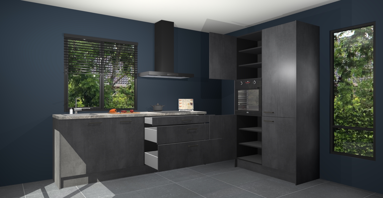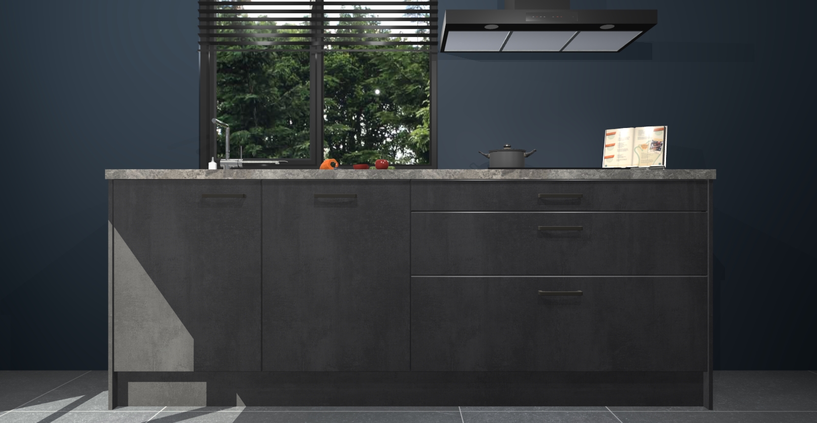 Wacht niet langer en bestel nu uw persoonlijke Beton zwarte keuken Monaco! Ongeacht beperkt budget of eindeloze mogelijkheden; met ons maakt u verstandig, overtuigend én goedkoop uw droomkeuken waar.