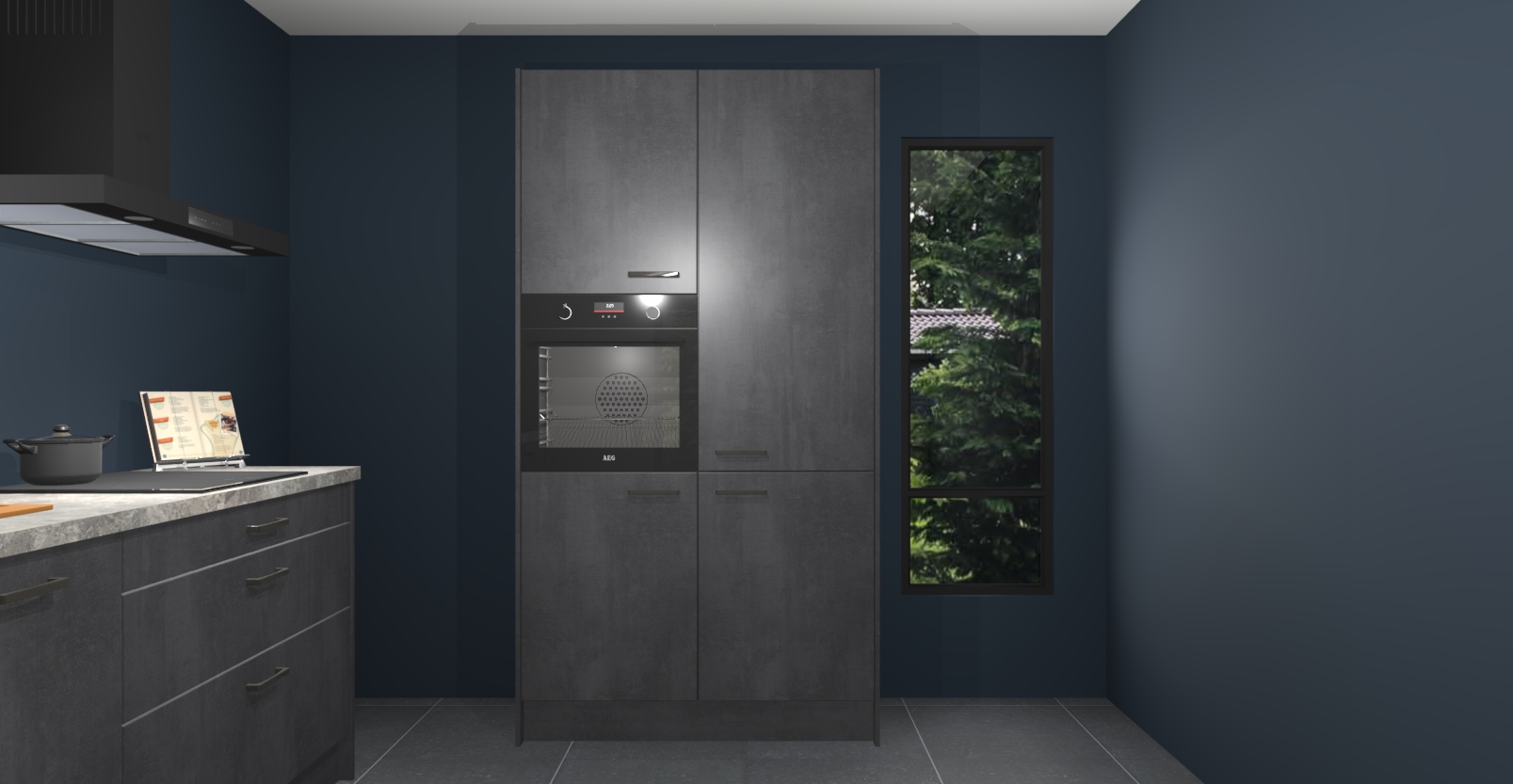 De setting is compleet gemaakt door de vijf inbouwapparaten: wanneer u gaat bestellen kunt u upgraden naar AEG-apparaten als oven, inductieplaat, afzuigkap, vaatwasser en koelkast. Kiest u voor onze Beton zwarte keuken Monaco, dan weet u zeker dat u te maken heeft met Duitse kwaliteit. Bovendien is er altijd sprake van een lage prijs en profiteren we aantrekkelijk leveringstermijn: die bedraagt slechts 7 weken ! Om het extra makkelijk te maken worden de keukenkasten reeds voorgemonteerd geleverd.