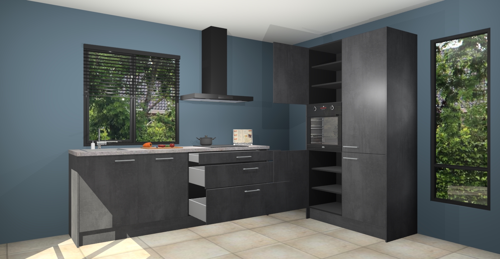Wacht niet langer en bestel nu uw persoonlijke Beton zwarte keuken Monaco! Ongeacht beperkt budget of eindeloze mogelijkheden; met ons maakt u verstandig, overtuigend én goedkoop uw droomkeuken waar.