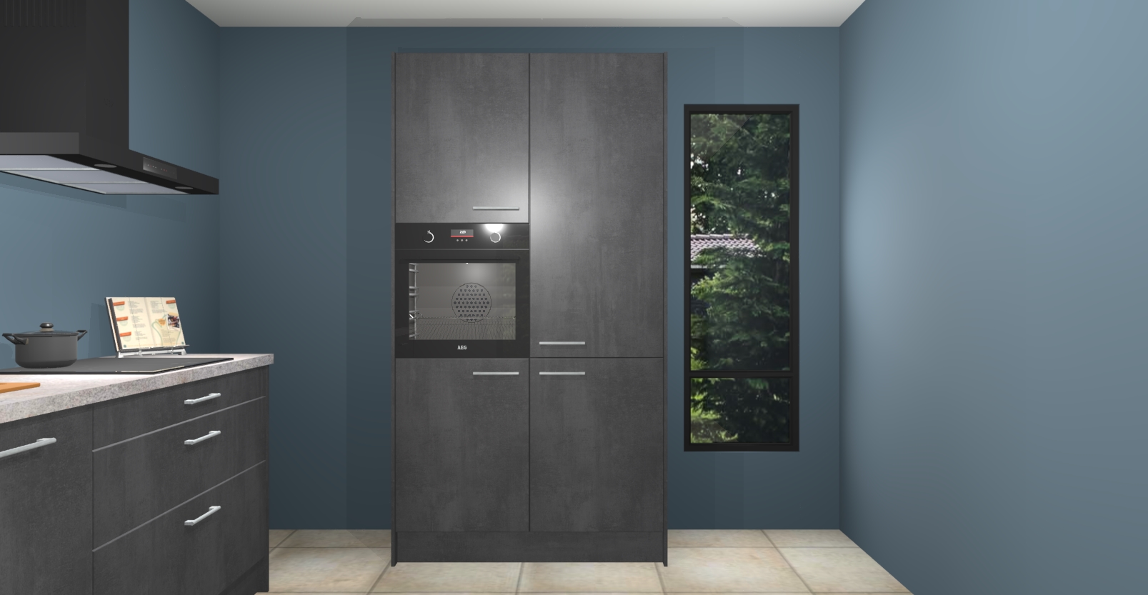 De setting is compleet gemaakt door de vijf inbouwapparaten: wanneer u gaat bestellen kunt u upgraden naar AEG-apparaten als oven, inductieplaat, afzuigkap, vaatwasser en koelkast. Kiest u voor onze Beton zwarte keuken Monaco, dan weet u zeker dat u te maken heeft met Duitse kwaliteit. Bovendien is er altijd sprake van een lage prijs en profiteren we aantrekkelijk leveringstermijn: die bedraagt slechts 7 weken ! Om het extra makkelijk te maken worden de keukenkasten reeds voorgemonteerd geleverd.