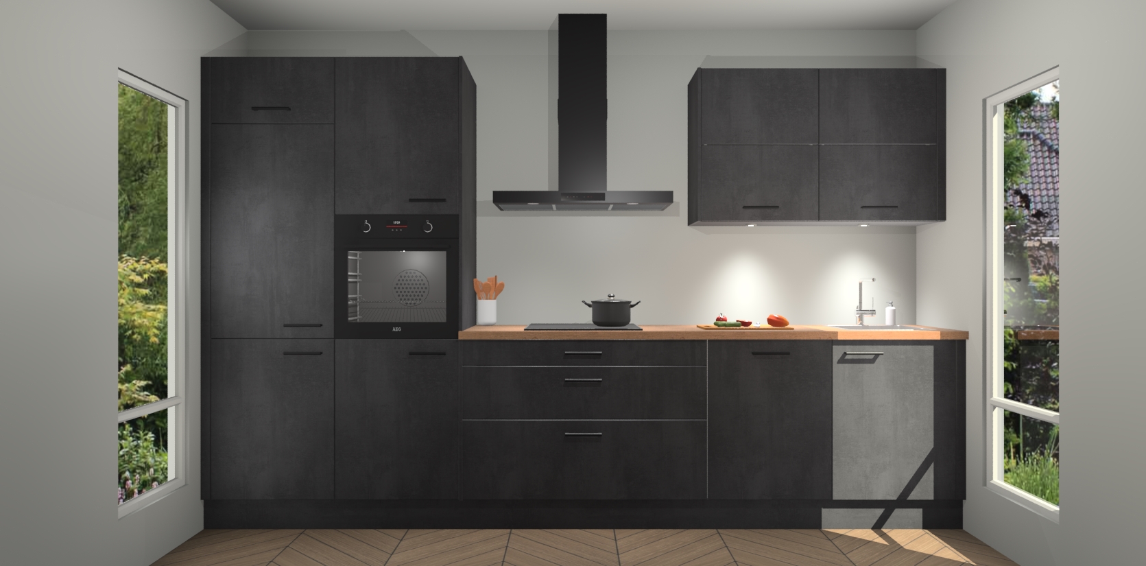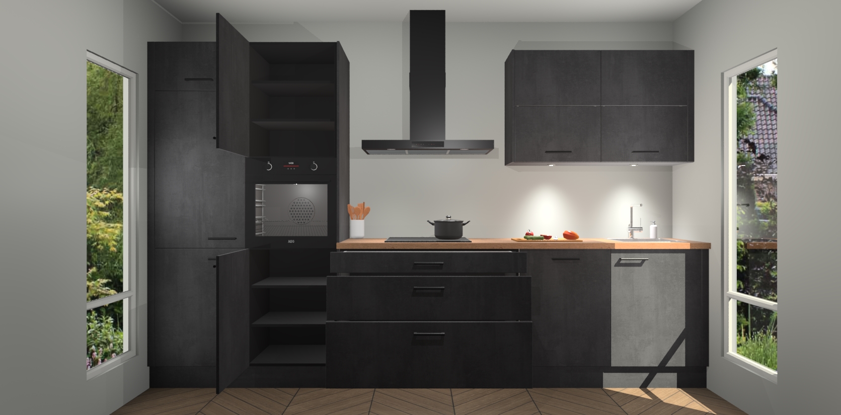 Maak kennis met de nieuwe Beton Zwarte Keuken Parijs - de perfecte designcombinatie van gemak, moderne elegantie en ultramodern design. Met een gemakkelijk te reinigen Beton Zwarte afwerking, zal de slankheid van deze keuken zeker een vleugje luxe toevoegen aan elke ruimte die hij inneemt.