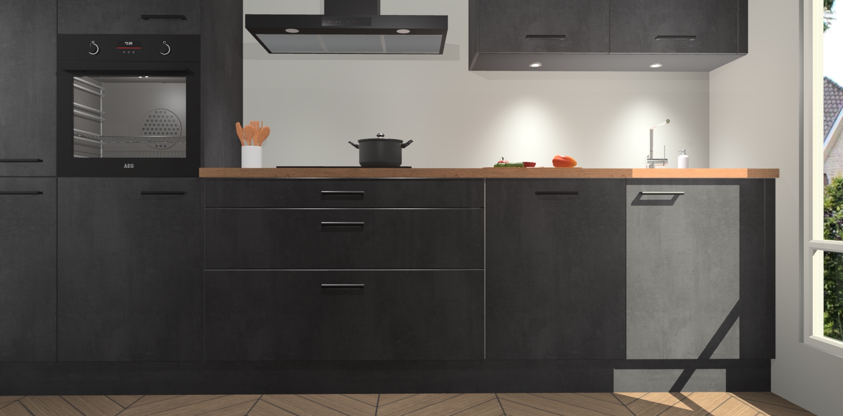 Inclusief plinten, stelpoten en werkblad