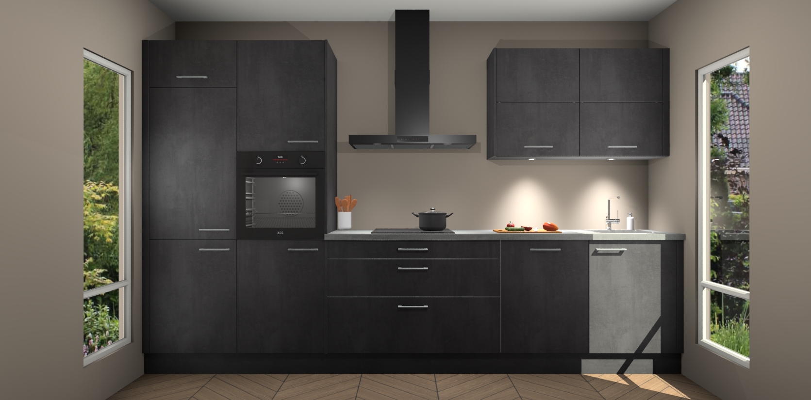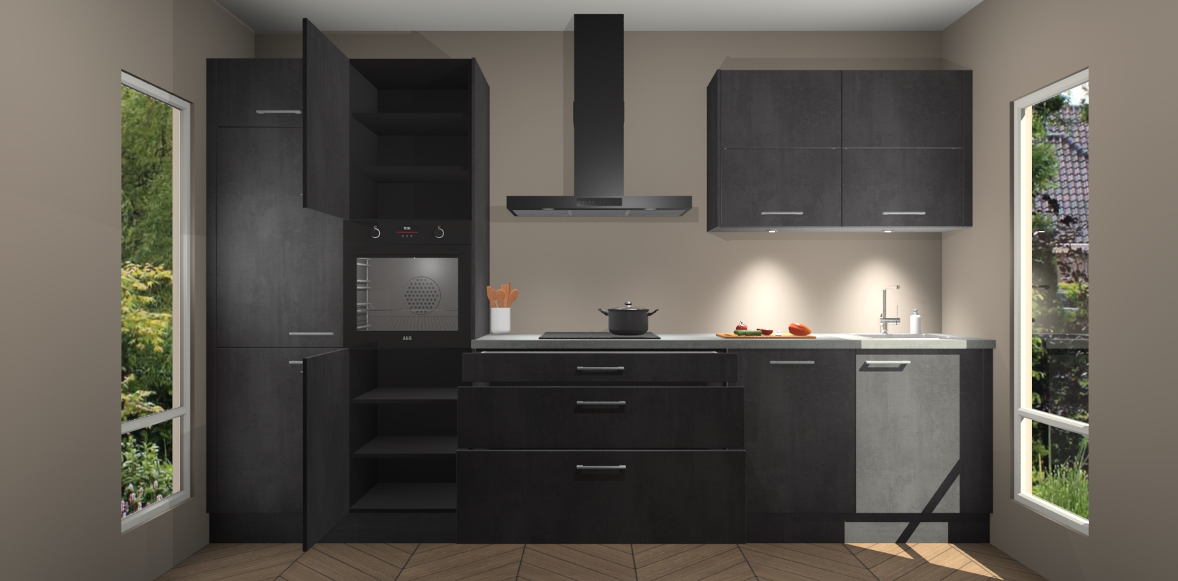 Maak kennis met de nieuwe Beton Zwarte Keuken Parijs - de perfecte designcombinatie van gemak, moderne elegantie en ultramodern design. Met een gemakkelijk te reinigen Beton Zwarte afwerking, zal de slankheid van deze keuken zeker een vleugje luxe toevoegen aan elke ruimte die hij inneemt.