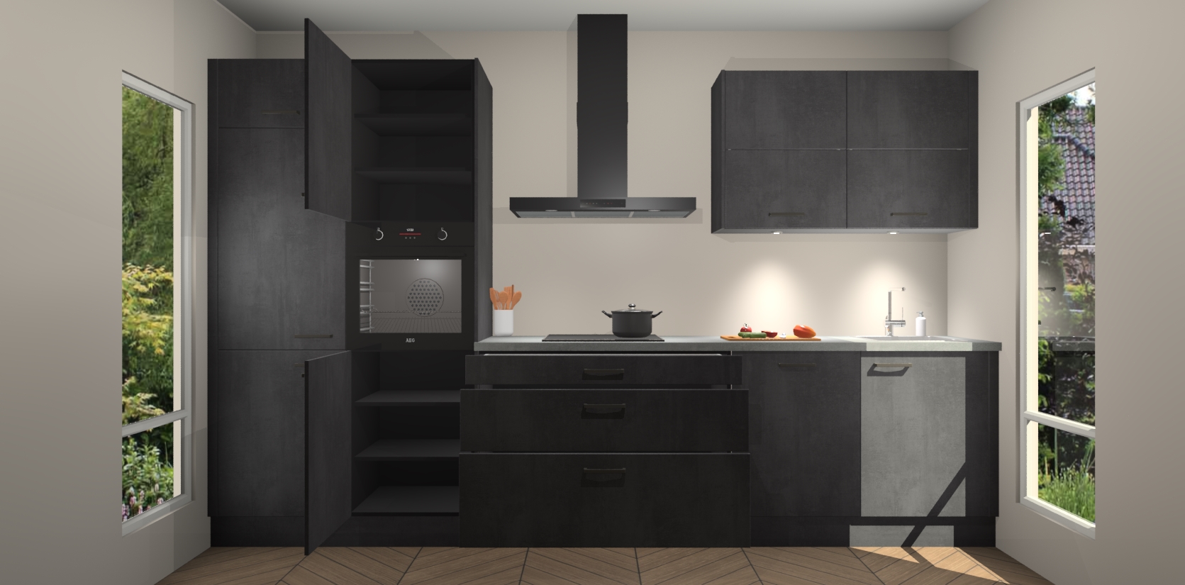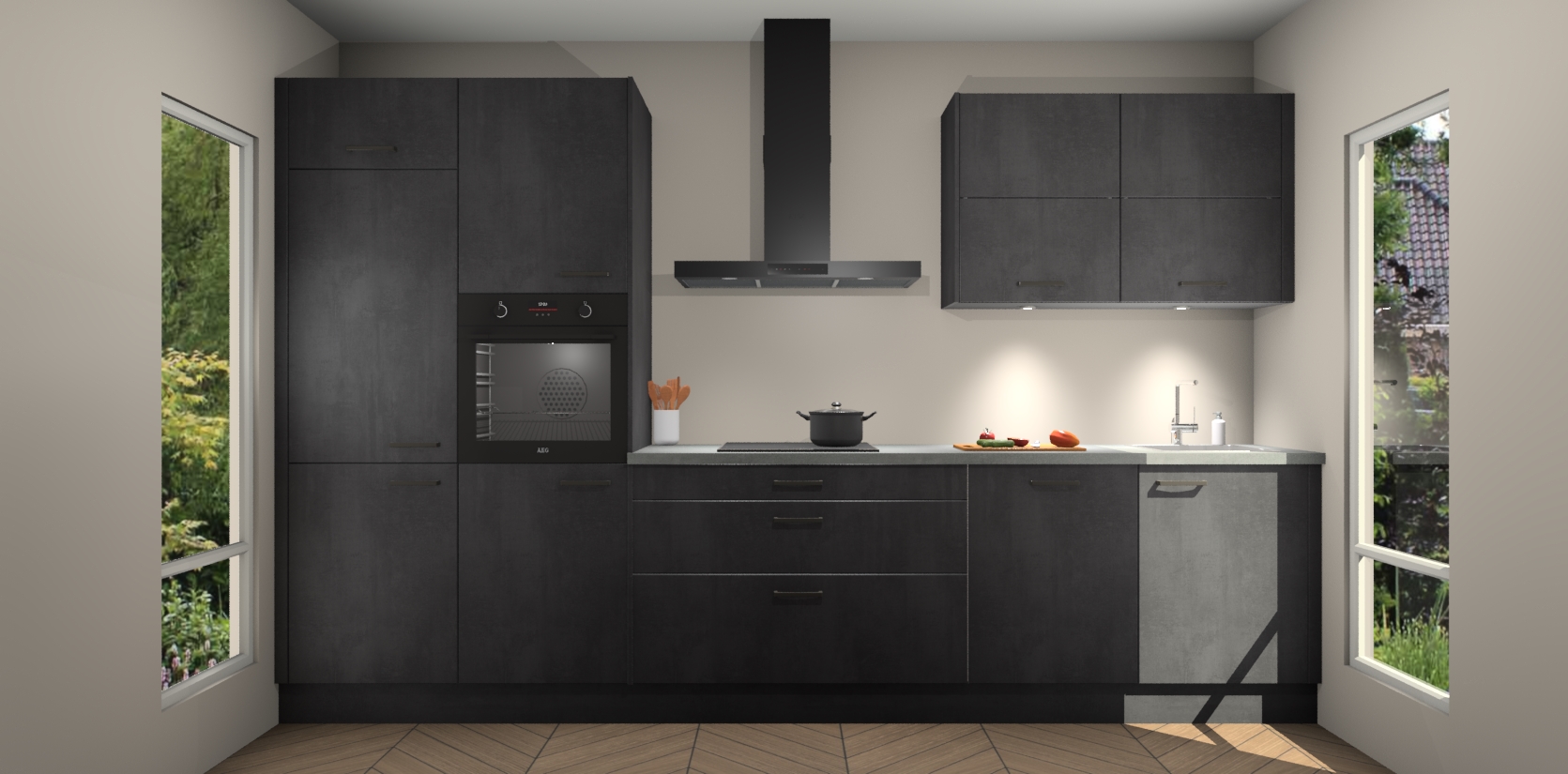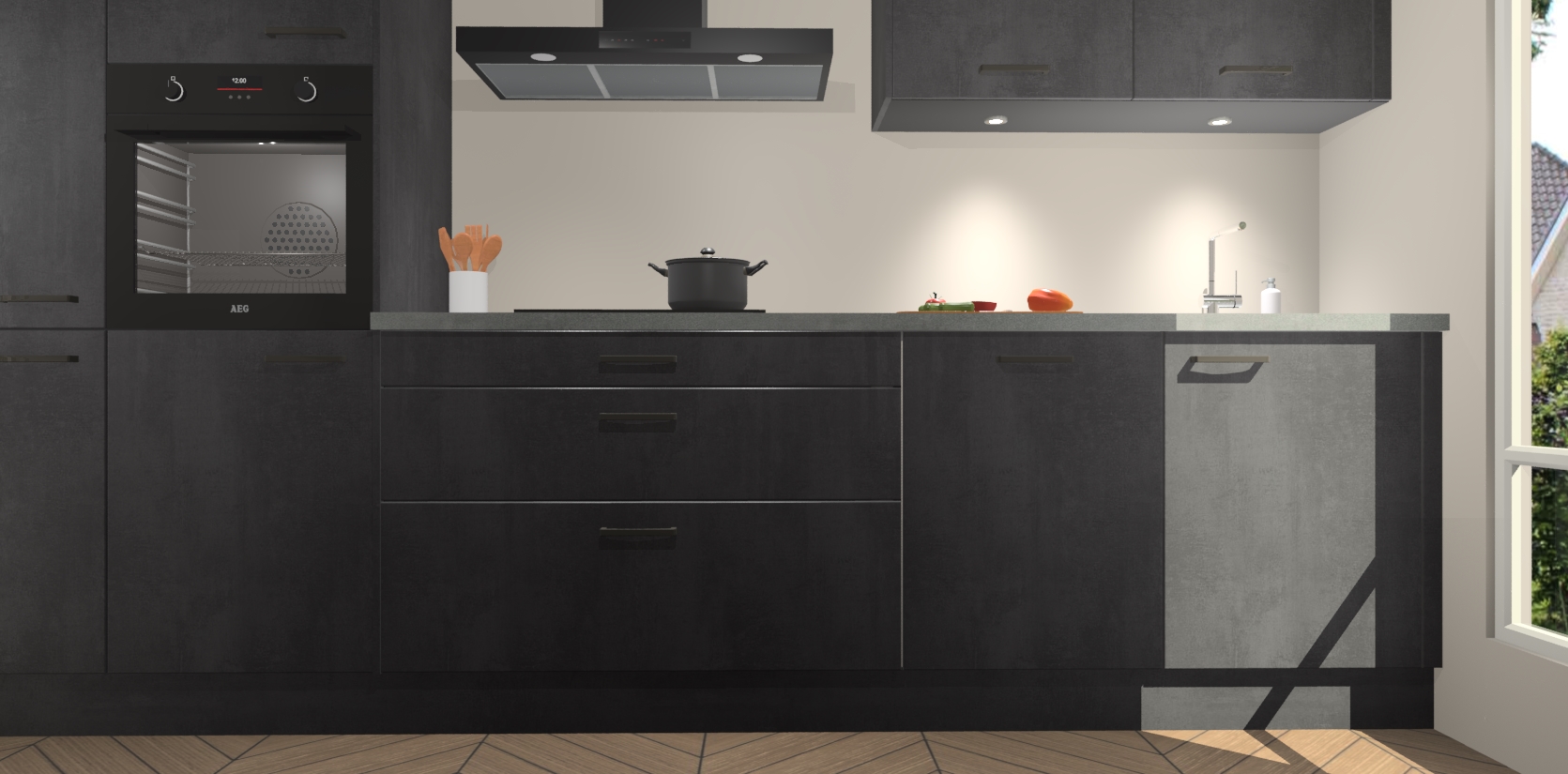 Maak kennis met de nieuwe Beton Zwarte Keuken Parijs - de perfecte designcombinatie van gemak, moderne elegantie en ultramodern design. Met een gemakkelijk te reinigen Beton Zwarte afwerking, zal de slankheid van deze keuken zeker een vleugje luxe toevoegen aan elke ruimte die hij inneemt.