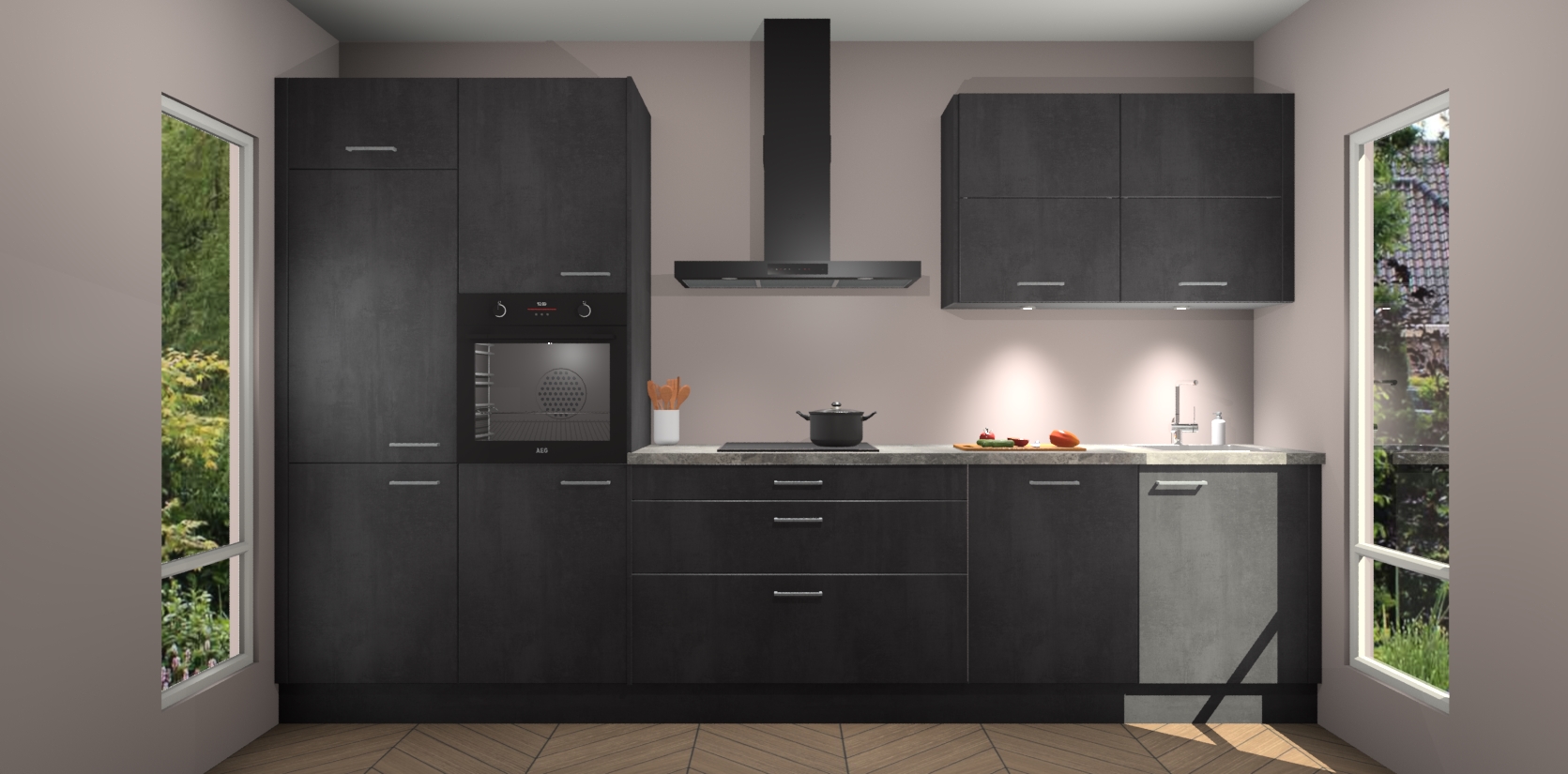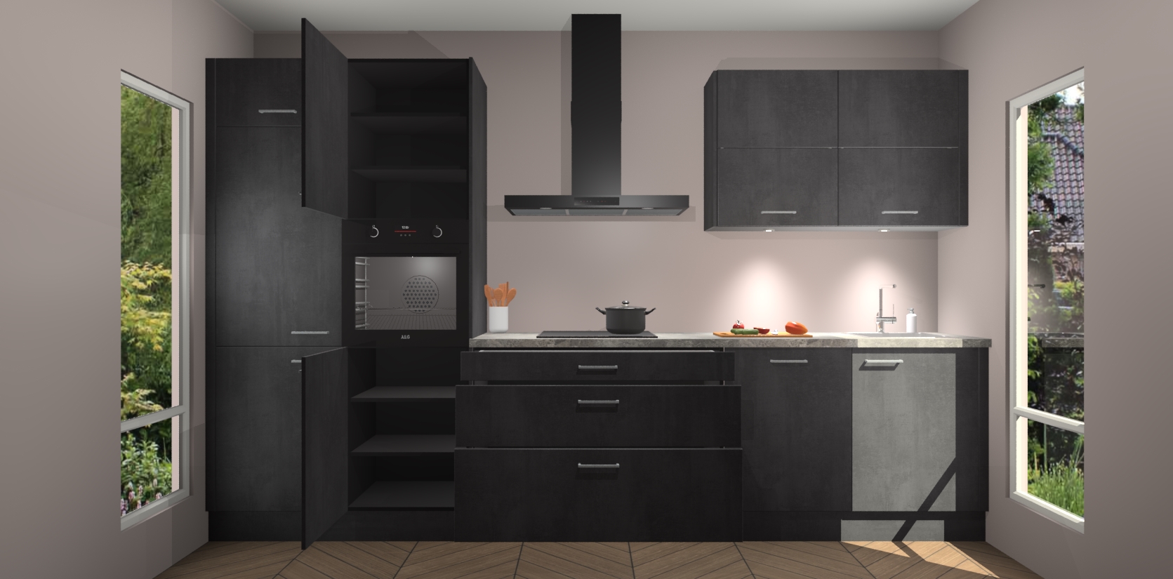 Maak kennis met de nieuwe Beton Zwarte Keuken Parijs - de perfecte designcombinatie van gemak, moderne elegantie en ultramodern design. Met een gemakkelijk te reinigen Beton Zwarte afwerking, zal de slankheid van deze keuken zeker een vleugje luxe toevoegen aan elke ruimte die hij inneemt.