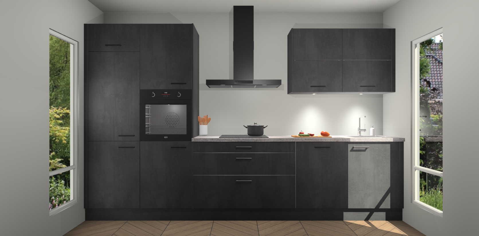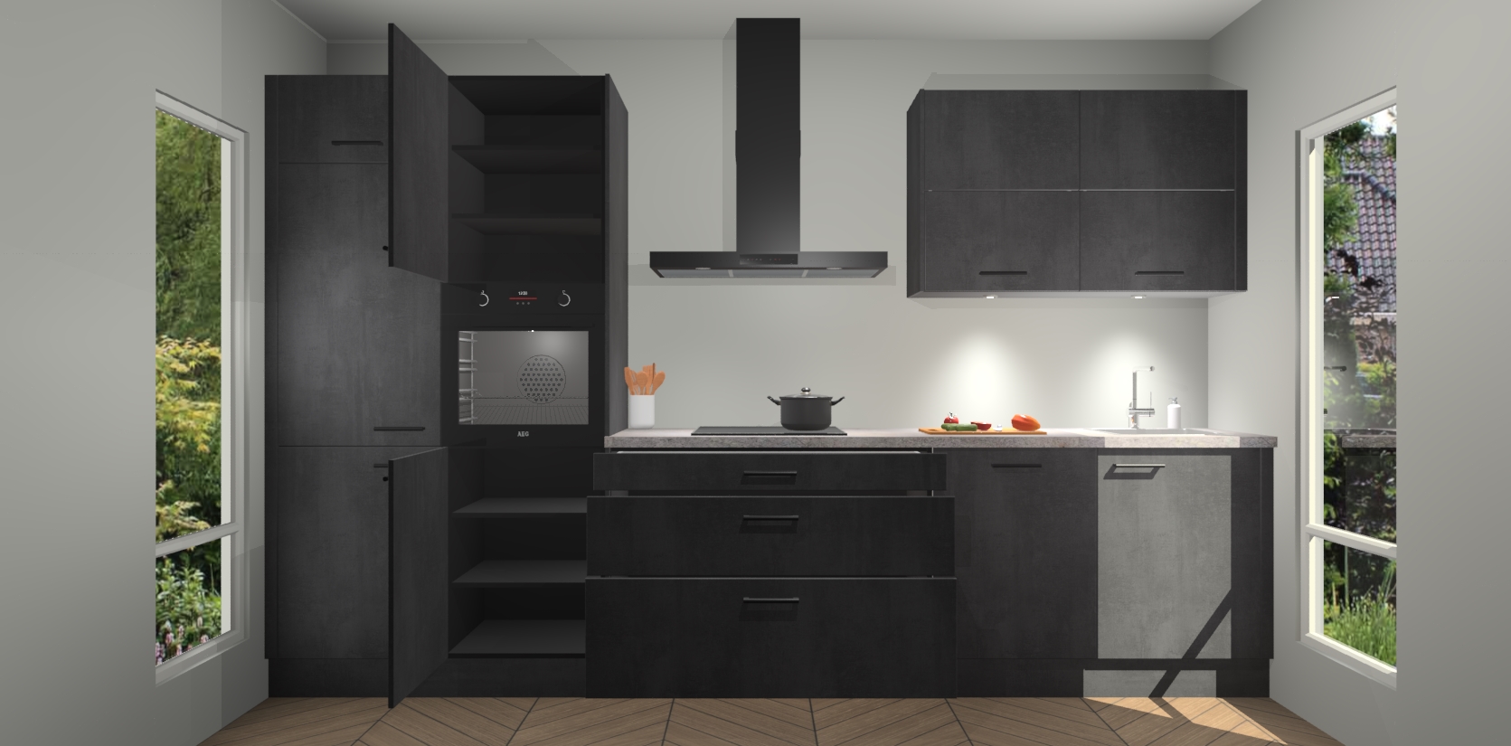Maak kennis met de nieuwe Beton Zwarte Keuken Parijs - de perfecte designcombinatie van gemak, moderne elegantie en ultramodern design. Met een gemakkelijk te reinigen Beton Zwarte afwerking, zal de slankheid van deze keuken zeker een vleugje luxe toevoegen aan elke ruimte die hij inneemt.