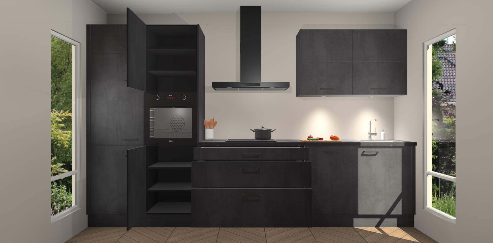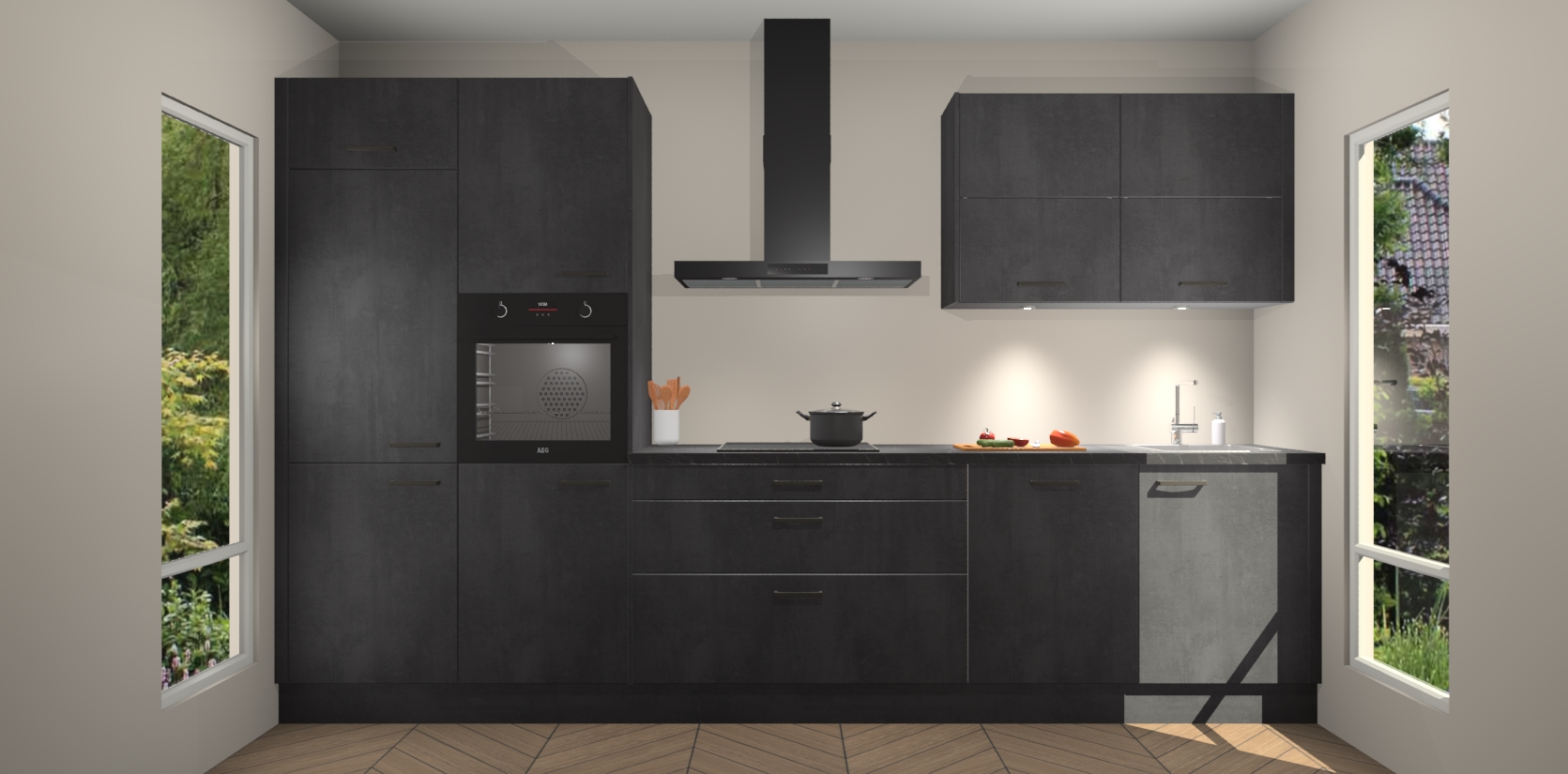 Maak kennis met de nieuwe Beton Zwarte Keuken Parijs - de perfecte designcombinatie van gemak, moderne elegantie en ultramodern design. Met een gemakkelijk te reinigen Beton Zwarte afwerking, zal de slankheid van deze keuken zeker een vleugje luxe toevoegen aan elke ruimte die hij inneemt.