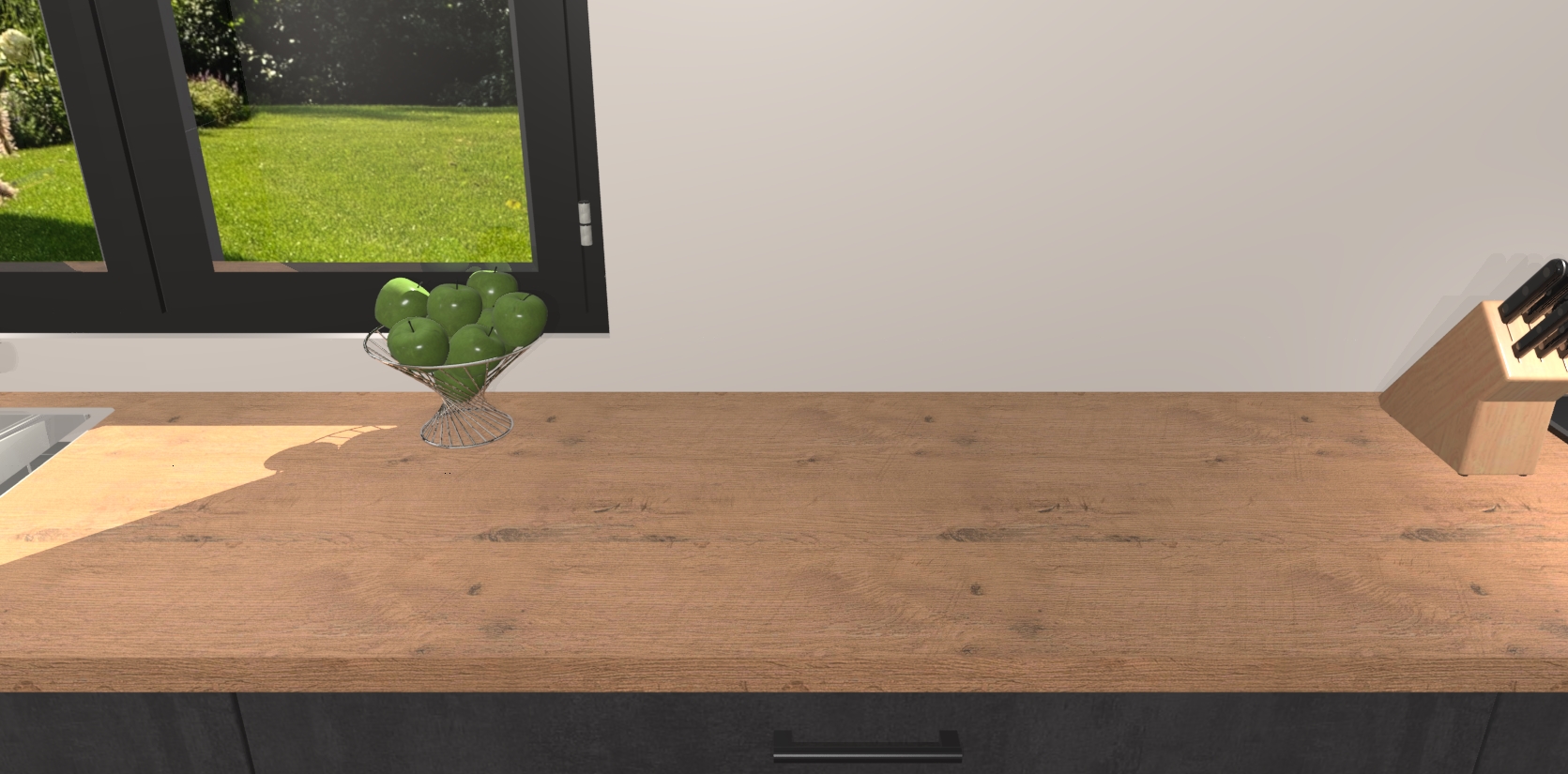 - Bij een hoekwerkblad zijn de hoeken in gevreesd en op maat gemaakt