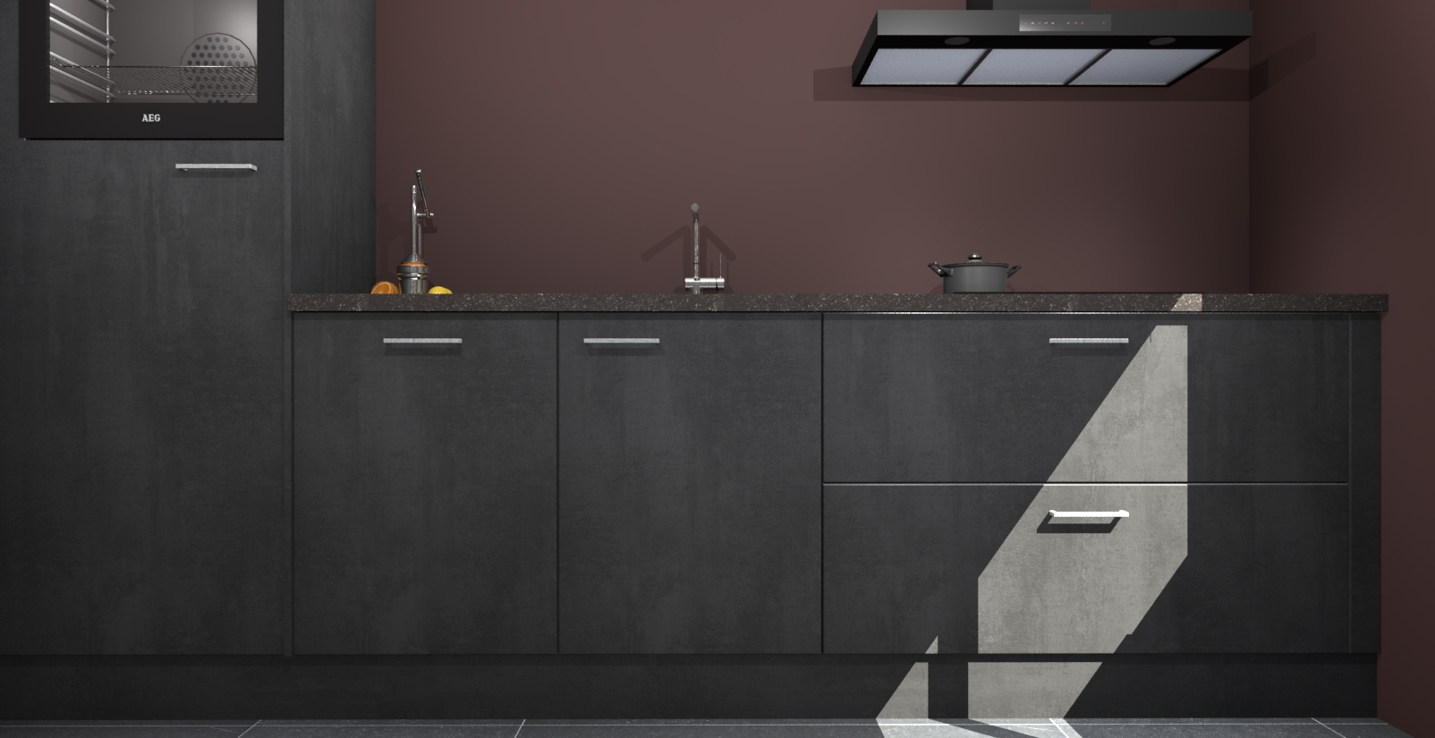 Of u nu een chef-kok bent op zoek naar heerlijkheid of gewoon iemand die een aantrekkelijke en praktische keukenruimte voor zijn gezin wil; Beton Zwarte keuken Tokelau heeft iets te bieden. Met tal van opbergmogelijkheden en een reeks beschikbare afwerkingen vind u zeker de juiste combinatie voor uw behoeften. Geniet van de warmte die dit klassieke kleurenschema uitstraalt en verbeter uw kookervaring met gemak. We garanderen u dat u niet teleurgesteld zal zijn!