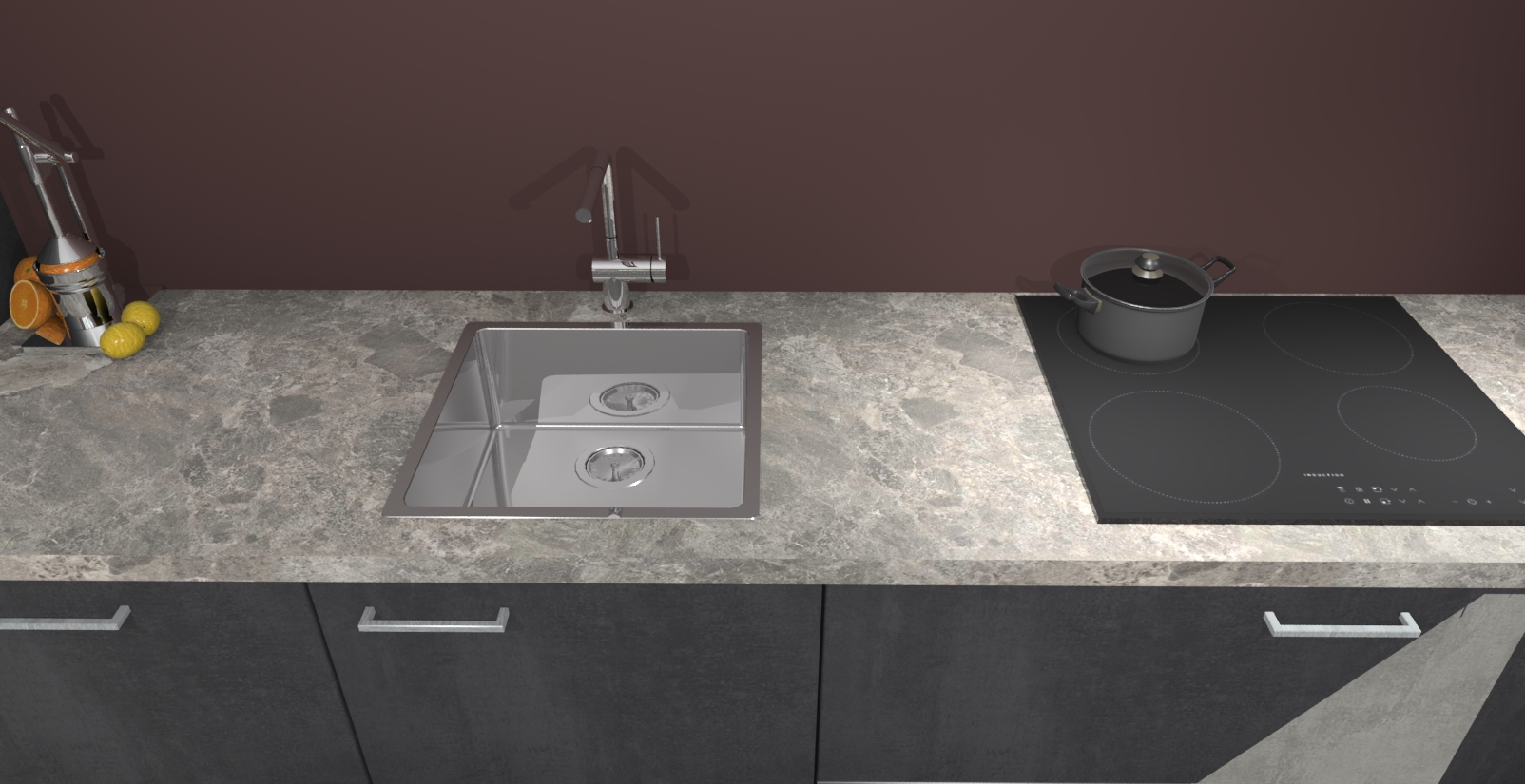 • Uitsparing van kookplaat, spoelbak en kraan dient u zelf te verzorgen.