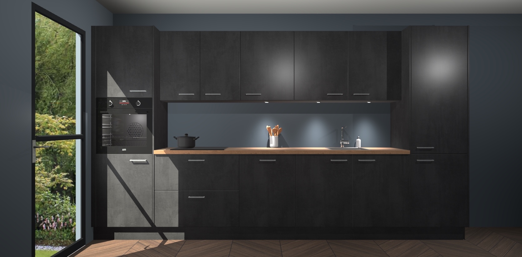 Dit is de perfecte keuken voor wie op zoek is naar een luxueuze stijl zonder zijn portemonnee te legen! Het chique ontwerp van de beton zwarte keuken Wels voegt dat vleugje verfijning toe aan elk huis. Het gemak van voorgemonteerde kasten bespaart u talloze uren tijd en energie, zodat u veel sneller dan verwacht kunt beginnen te genieten van uw prachtige nieuwe keuken. Bovendien bedraagt de levertijd slechts 7 weken.