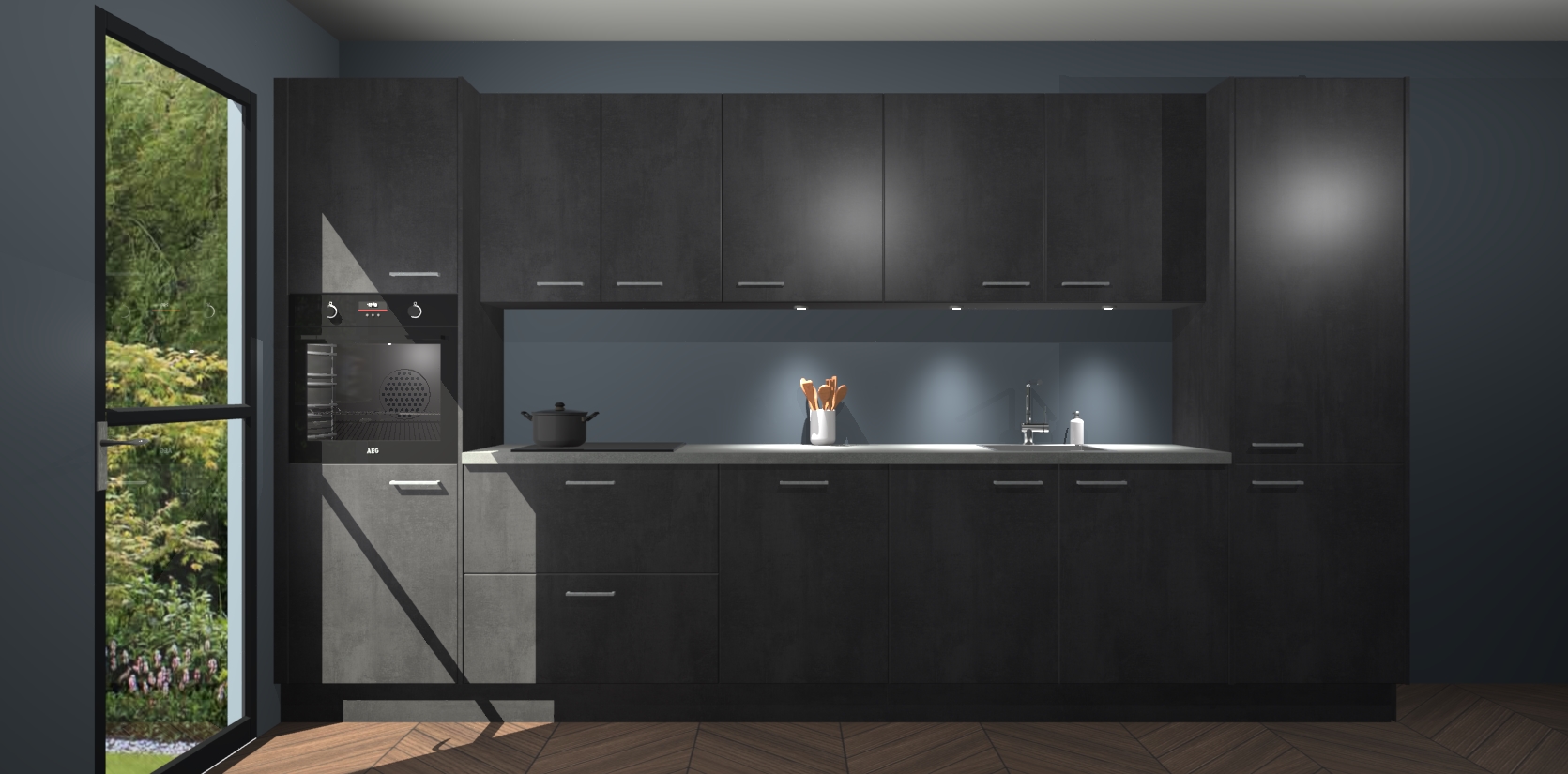 Dit is de perfecte keuken voor wie op zoek is naar een luxueuze stijl zonder zijn portemonnee te legen! Het chique ontwerp van de beton zwarte keuken Wels voegt dat vleugje verfijning toe aan elk huis. Het gemak van voorgemonteerde kasten bespaart u talloze uren tijd en energie, zodat u veel sneller dan verwacht kunt beginnen te genieten van uw prachtige nieuwe keuken. Bovendien bedraagt de levertijd slechts 7 weken.