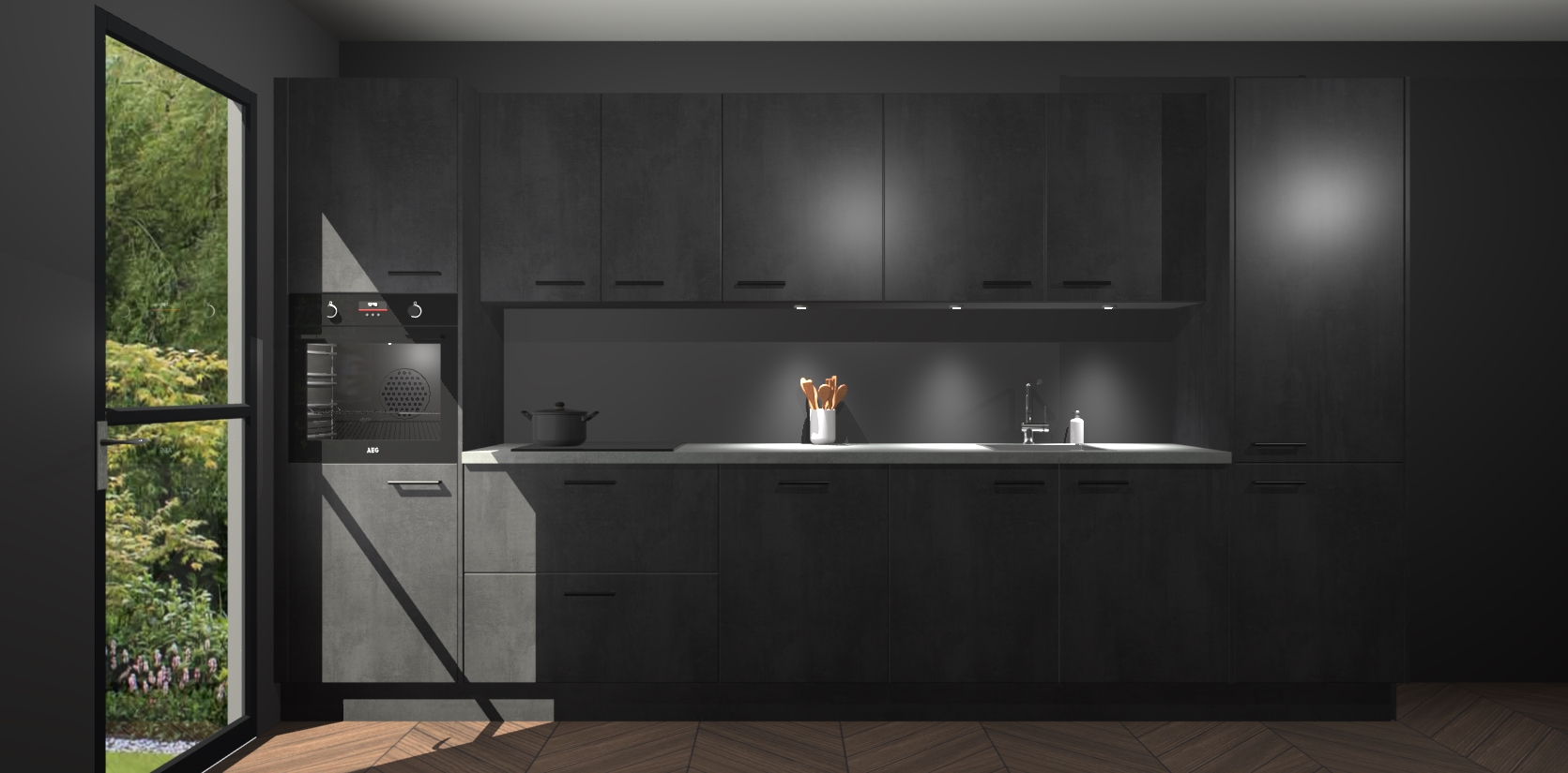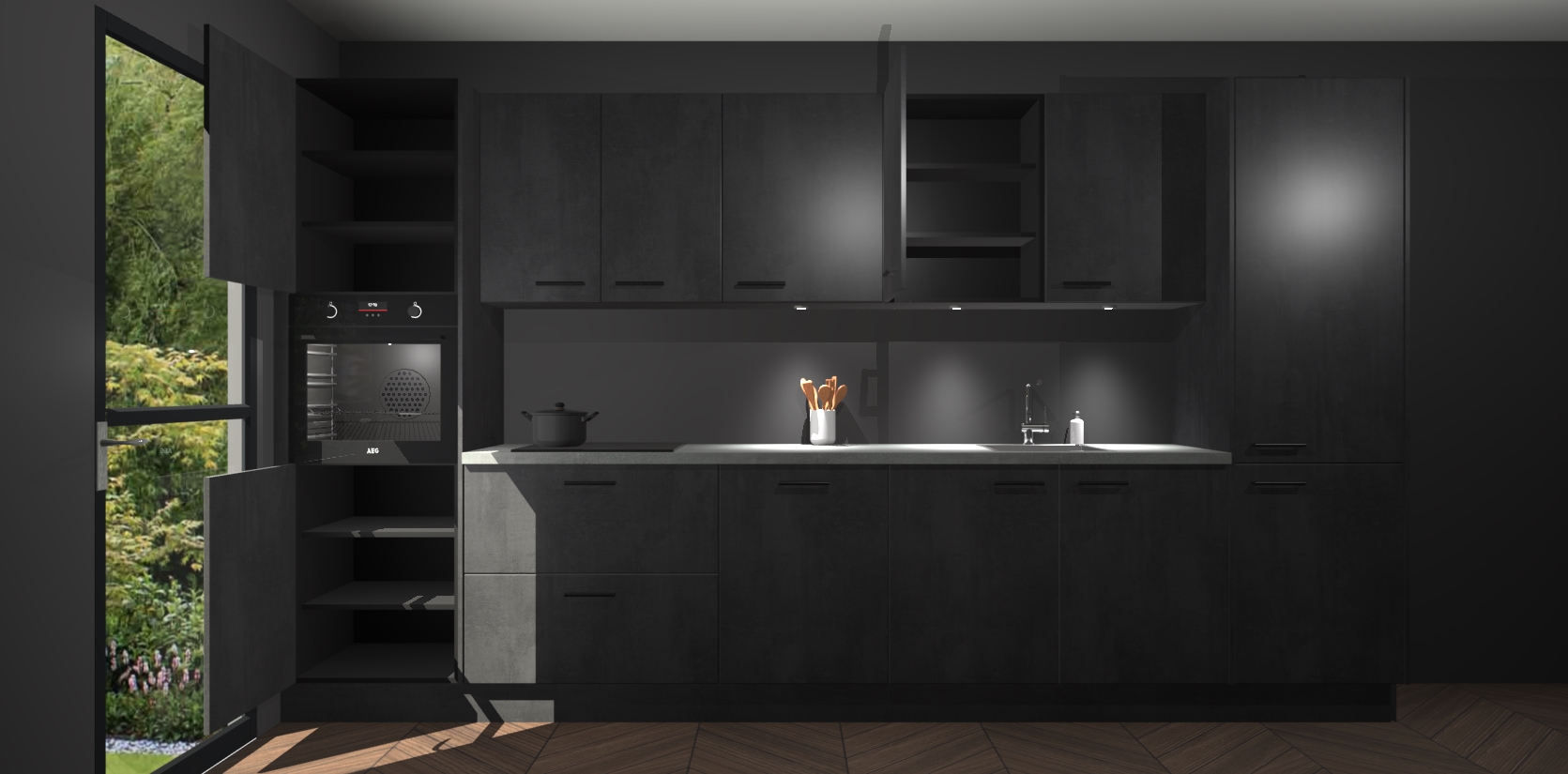 Dit is de perfecte keuken voor wie op zoek is naar een luxueuze stijl zonder zijn portemonnee te legen! Het chique ontwerp van de beton zwarte keuken Wels voegt dat vleugje verfijning toe aan elk huis. Het gemak van voorgemonteerde kasten bespaart u talloze uren tijd en energie, zodat u veel sneller dan verwacht kunt beginnen te genieten van uw prachtige nieuwe keuken. Bovendien bedraagt de levertijd slechts 7 weken.