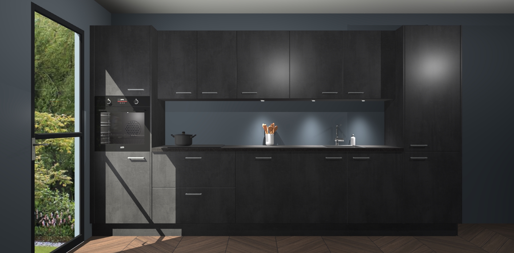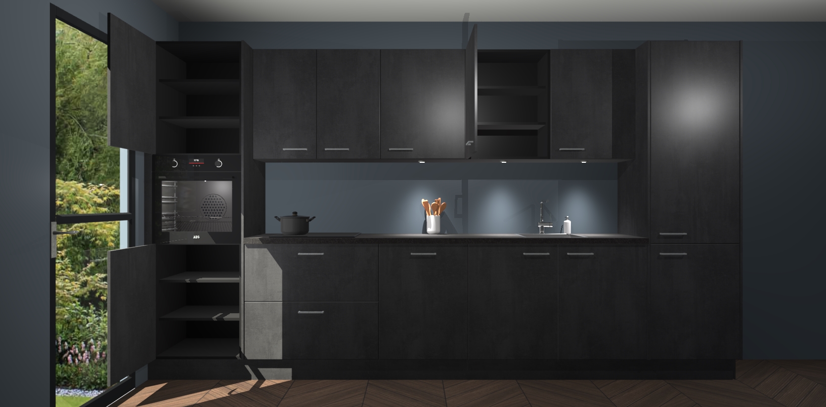 Dit is de perfecte keuken voor wie op zoek is naar een luxueuze stijl zonder zijn portemonnee te legen! Het chique ontwerp van de beton zwarte keuken Wels voegt dat vleugje verfijning toe aan elk huis. Het gemak van voorgemonteerde kasten bespaart u talloze uren tijd en energie, zodat u veel sneller dan verwacht kunt beginnen te genieten van uw prachtige nieuwe keuken. Bovendien bedraagt de levertijd slechts 7 weken.