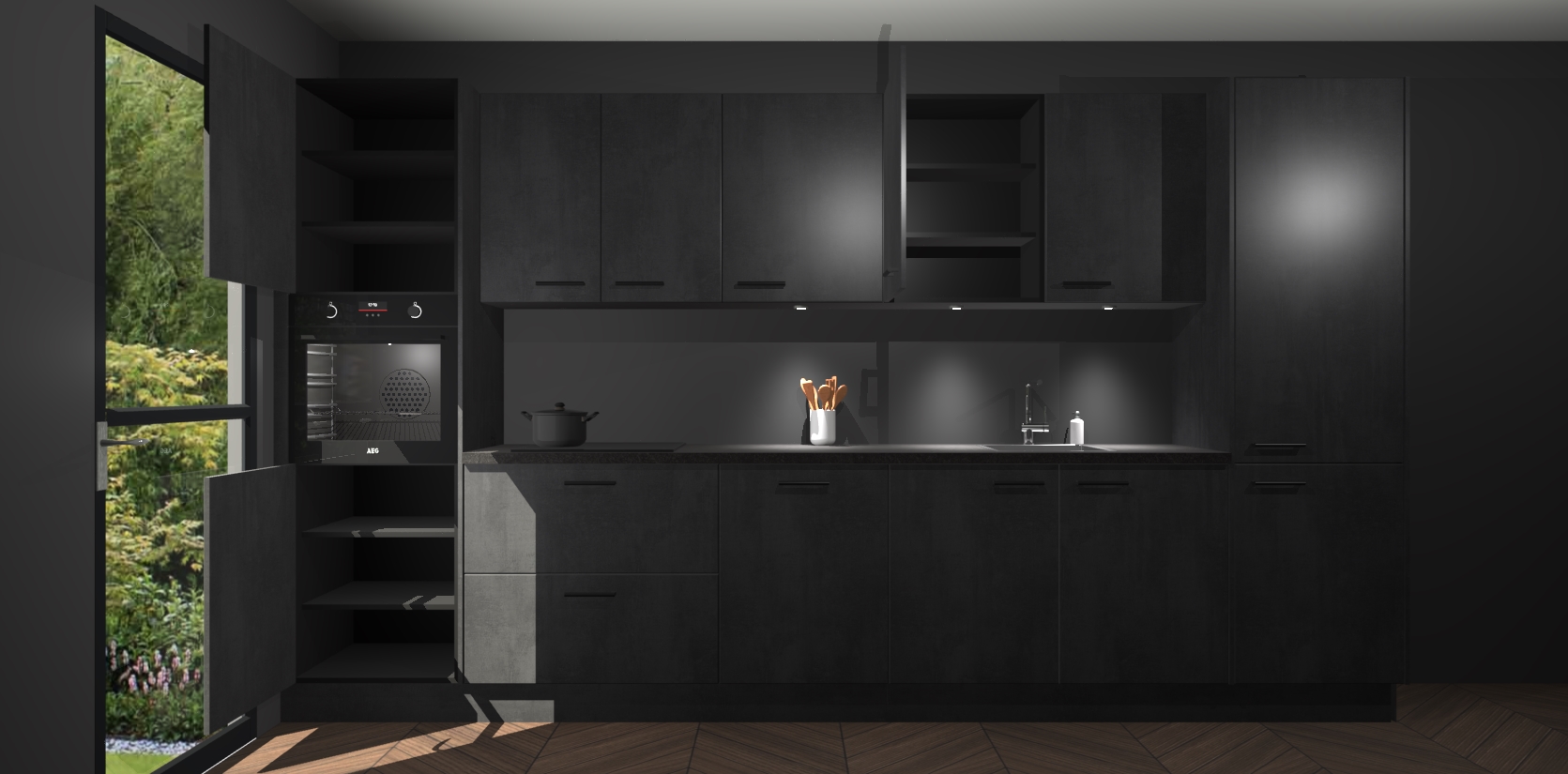 Dit is de perfecte keuken voor wie op zoek is naar een luxueuze stijl zonder zijn portemonnee te legen! Het chique ontwerp van de beton zwarte keuken Wels voegt dat vleugje verfijning toe aan elk huis. Het gemak van voorgemonteerde kasten bespaart u talloze uren tijd en energie, zodat u veel sneller dan verwacht kunt beginnen te genieten van uw prachtige nieuwe keuken. Bovendien bedraagt de levertijd slechts 7 weken.