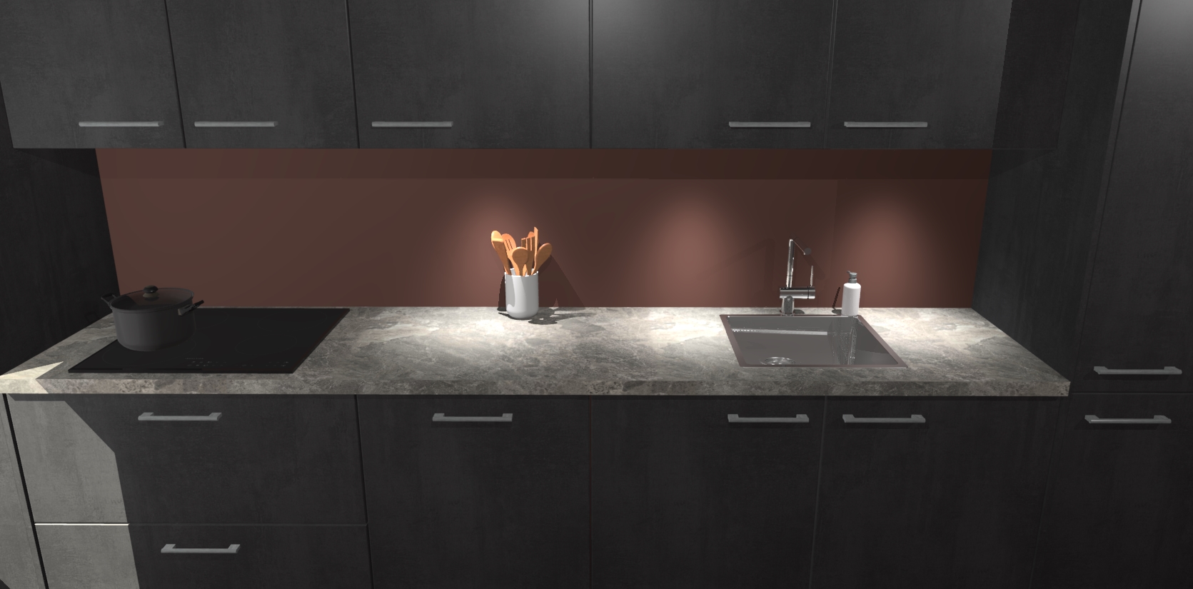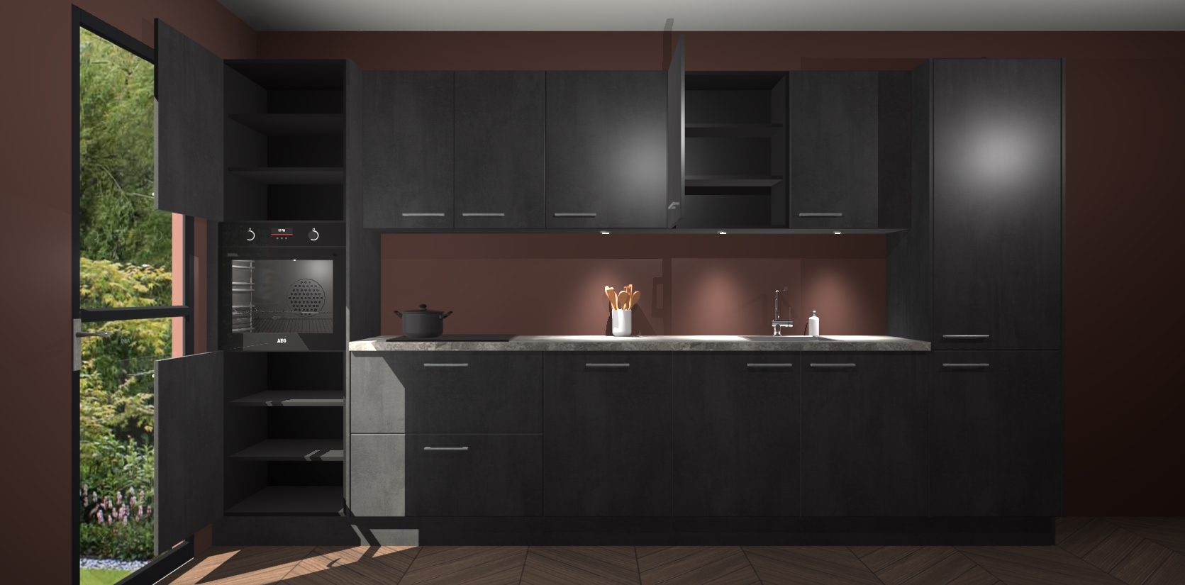 Dit is de perfecte keuken voor wie op zoek is naar een luxueuze stijl zonder zijn portemonnee te legen! Het chique ontwerp van de beton zwarte keuken Wels voegt dat vleugje verfijning toe aan elk huis. Het gemak van voorgemonteerde kasten bespaart u talloze uren tijd en energie, zodat u veel sneller dan verwacht kunt beginnen te genieten van uw prachtige nieuwe keuken. Bovendien bedraagt de levertijd slechts 7 weken.