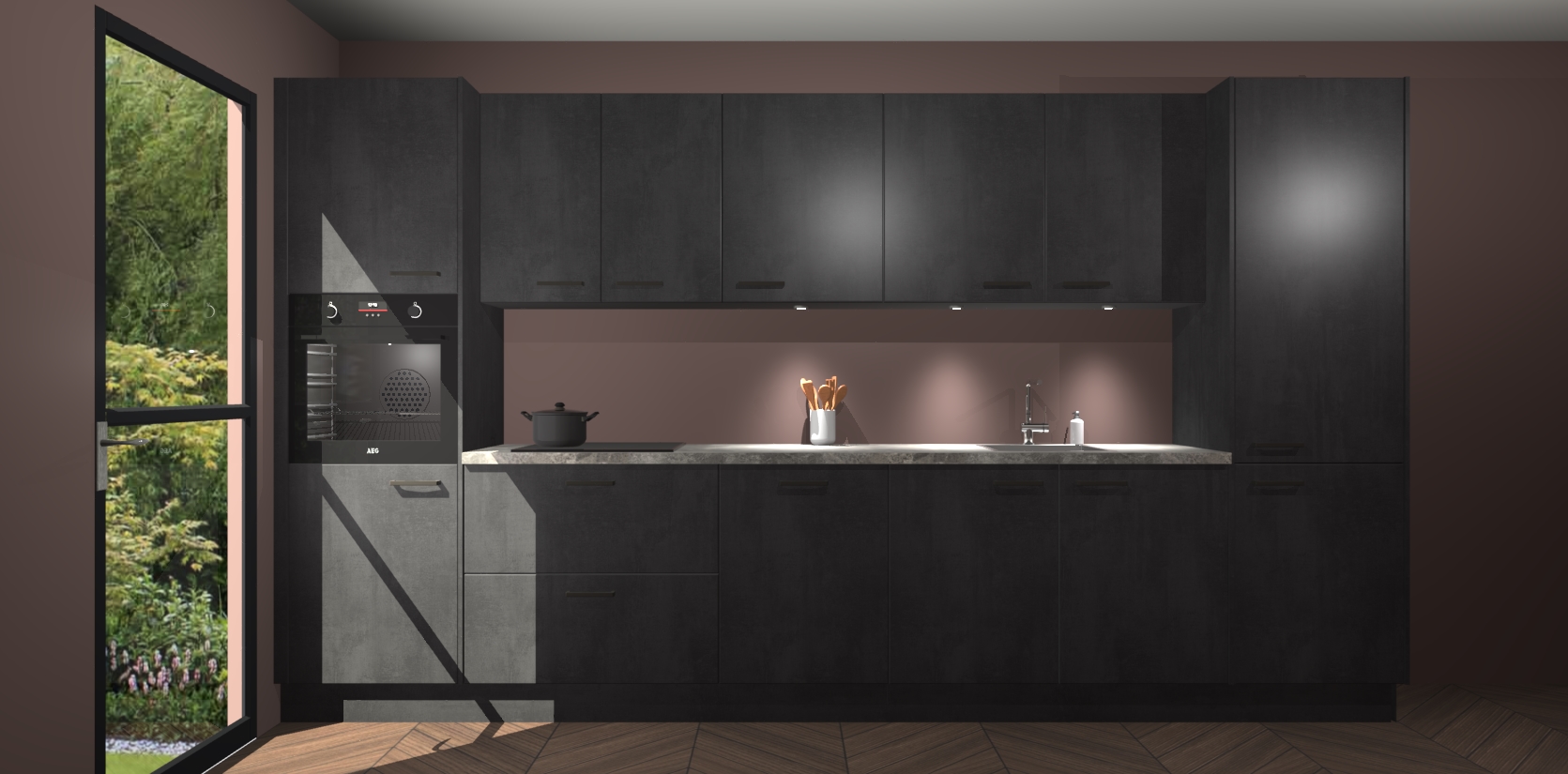Dit is de perfecte keuken voor wie op zoek is naar een luxueuze stijl zonder zijn portemonnee te legen! Het chique ontwerp van de beton zwarte keuken Wels voegt dat vleugje verfijning toe aan elk huis. Het gemak van voorgemonteerde kasten bespaart u talloze uren tijd en energie, zodat u veel sneller dan verwacht kunt beginnen te genieten van uw prachtige nieuwe keuken. Bovendien bedraagt de levertijd slechts 7 weken.