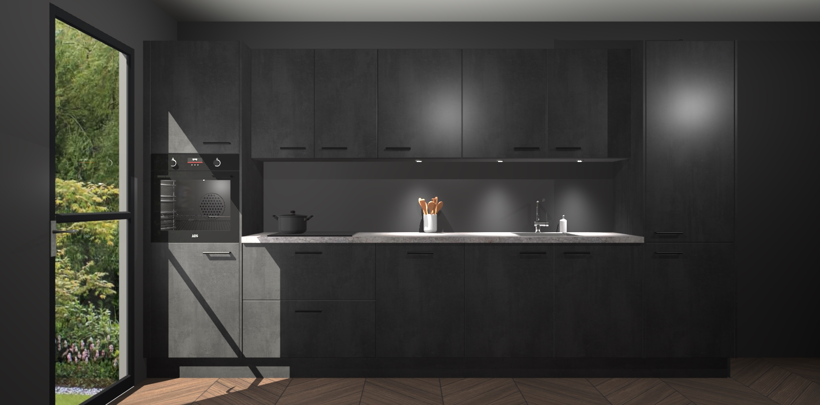 Dit is de perfecte keuken voor wie op zoek is naar een luxueuze stijl zonder zijn portemonnee te legen! Het chique ontwerp van de beton zwarte keuken Wels voegt dat vleugje verfijning toe aan elk huis. Het gemak van voorgemonteerde kasten bespaart u talloze uren tijd en energie, zodat u veel sneller dan verwacht kunt beginnen te genieten van uw prachtige nieuwe keuken. Bovendien bedraagt de levertijd slechts 7 weken.