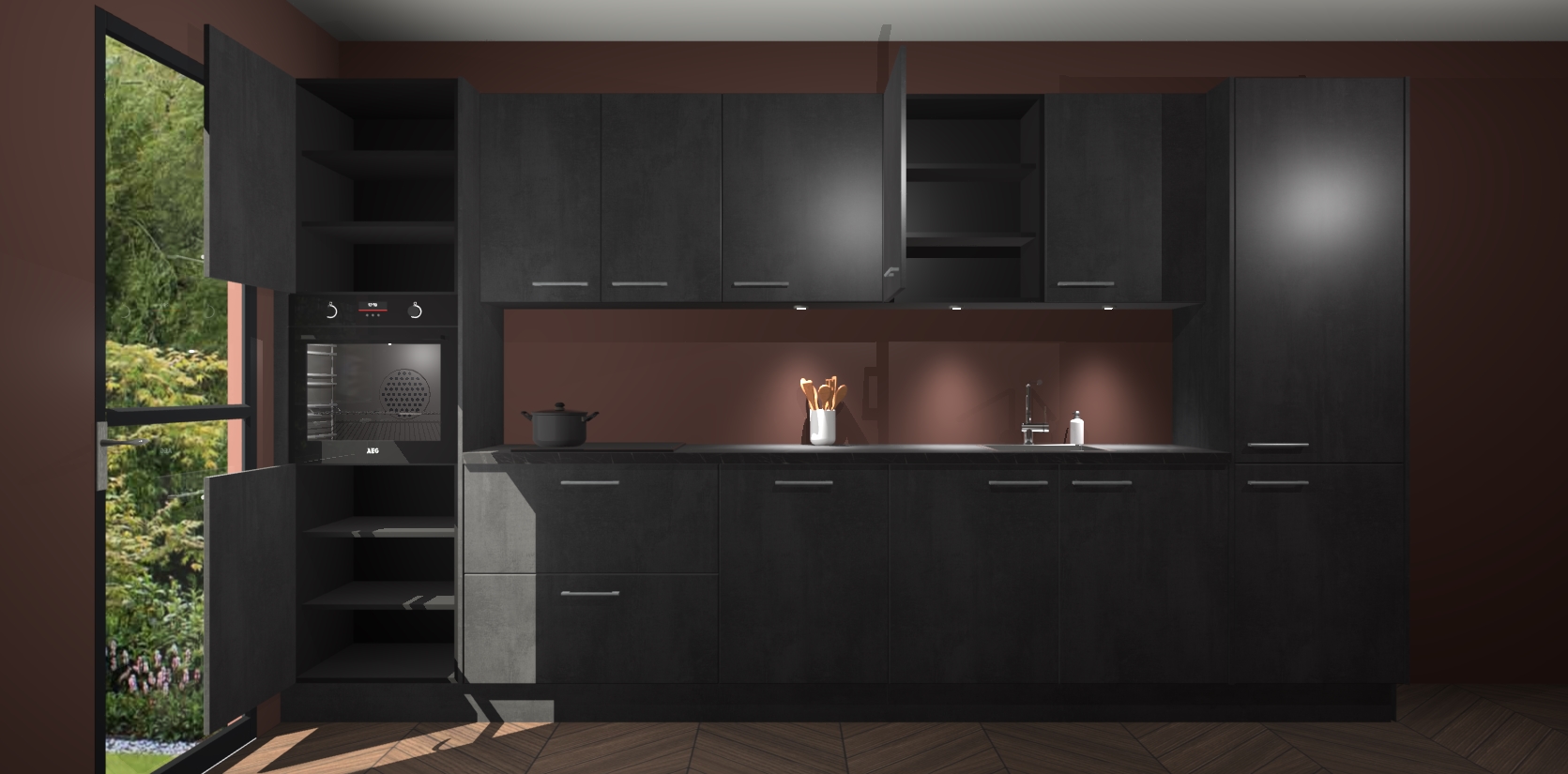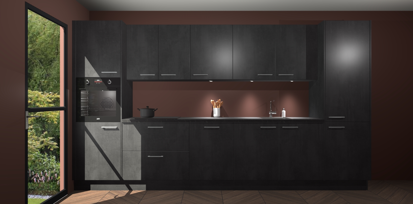 Dit is de perfecte keuken voor wie op zoek is naar een luxueuze stijl zonder zijn portemonnee te legen! Het chique ontwerp van de beton zwarte keuken Wels voegt dat vleugje verfijning toe aan elk huis. Het gemak van voorgemonteerde kasten bespaart u talloze uren tijd en energie, zodat u veel sneller dan verwacht kunt beginnen te genieten van uw prachtige nieuwe keuken. Bovendien bedraagt de levertijd slechts 7 weken.