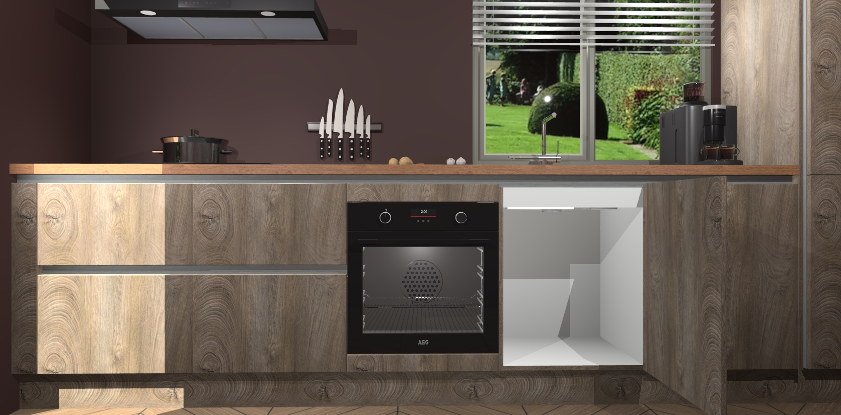- Ombouw om de oven onder het werkblad te kunnen monteren