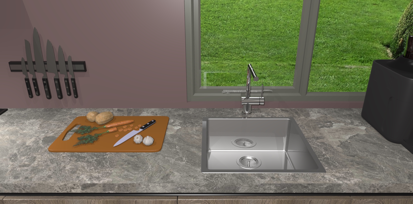 - De spoelbak is nog niet in gevreesd. Dit dient tijdens het werk gedaan te worden