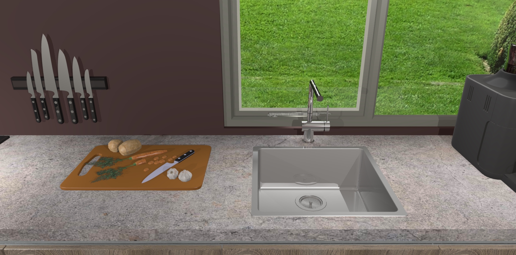 - De spoelbak is nog niet in gevreesd. Dit dient tijdens het werk gedaan te worden