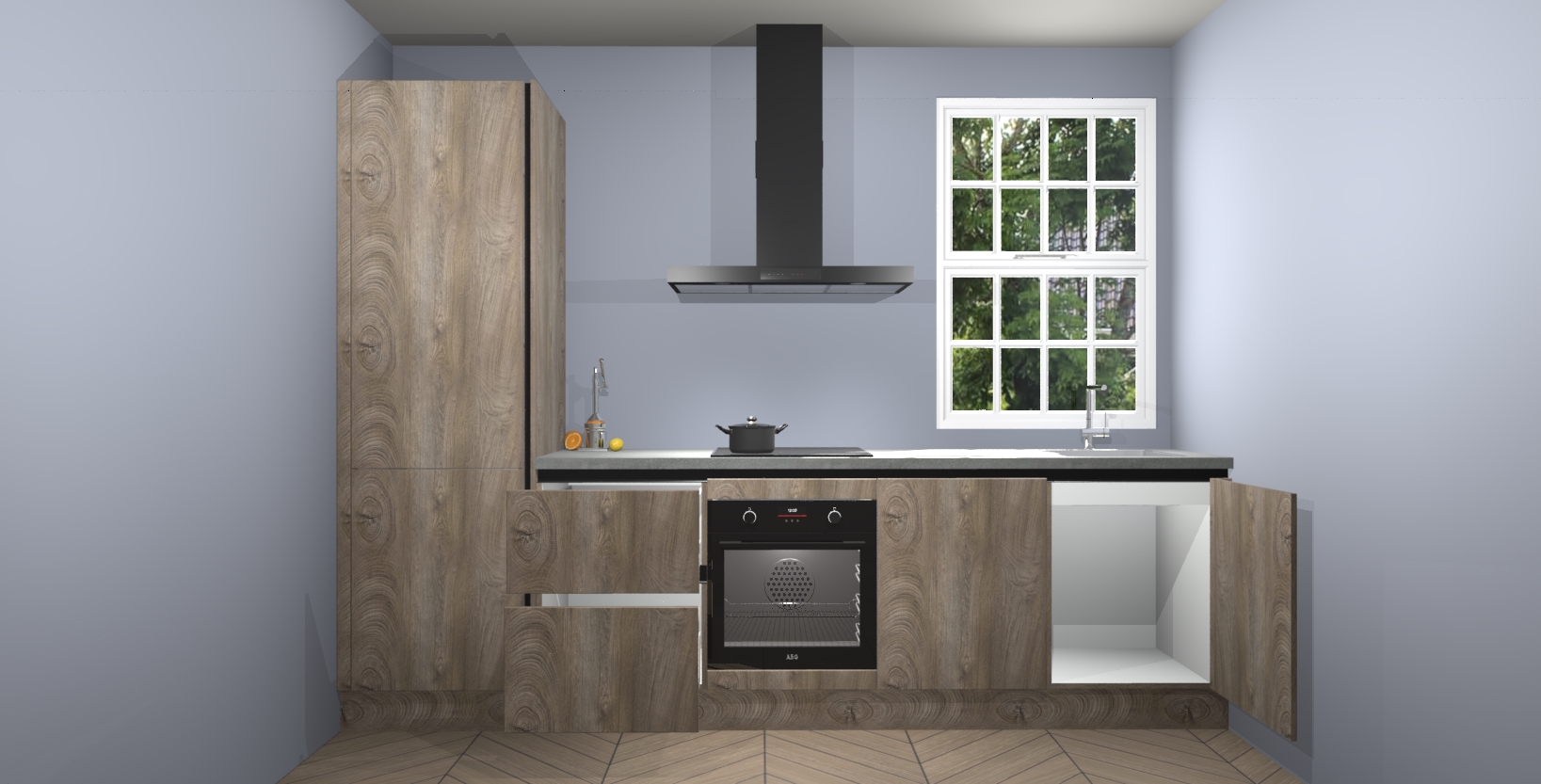 Inclusief plinten, stelpoten en werkblad
