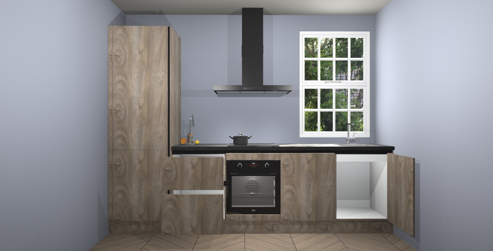 Inclusief plinten, stelpoten en werkblad