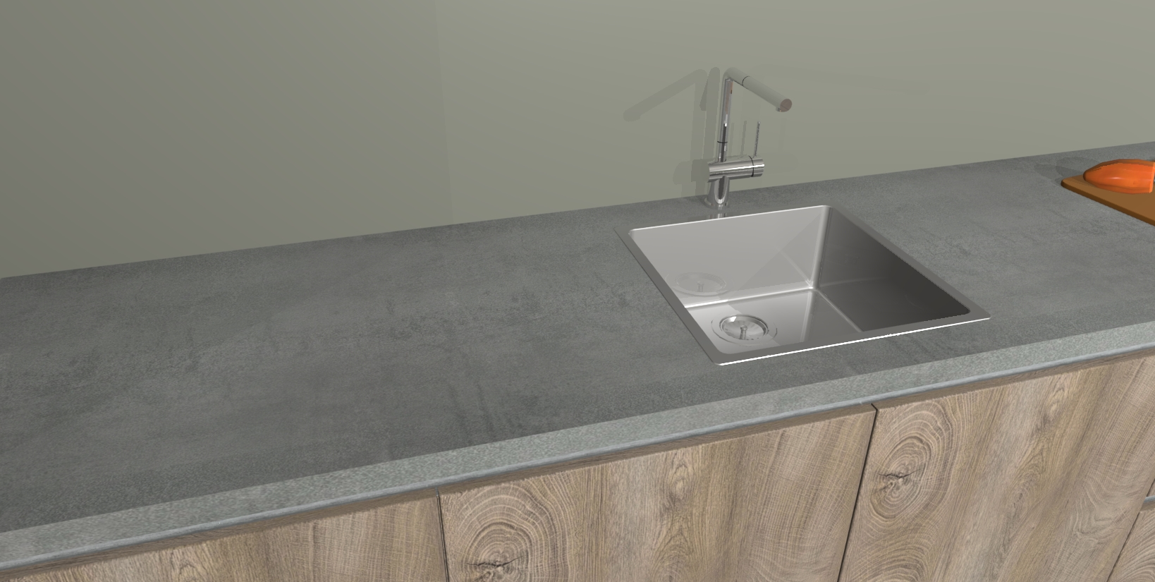 • De spoelbak is nog niet in gevreesd. Dit dient tijdens het werk gedaan te worden