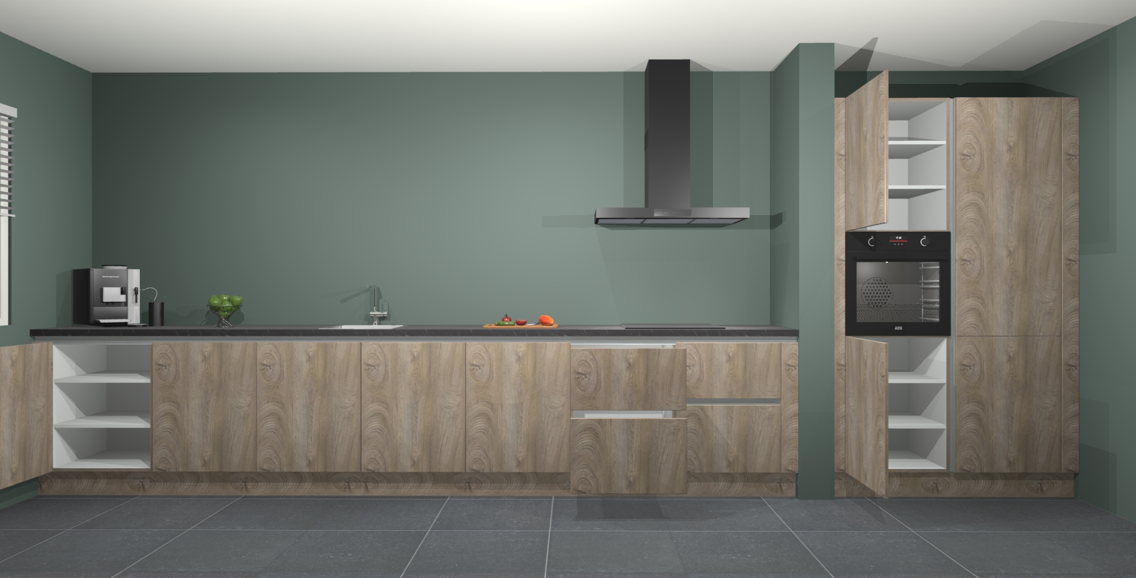 Maak kennis met de Cantaro eiken keuken Elzas - de perfecte aanvulling voor uw moderne keuken! Ervaar tijdloos design, elegantie en een chique uitstraling met onze handgrepen, soft-close deuren en veel opbergruimte. Dit alles wordt aangeboden tegen een vaste lage prijs voor ongeëvenaarde Duitse keukenkwaliteit!