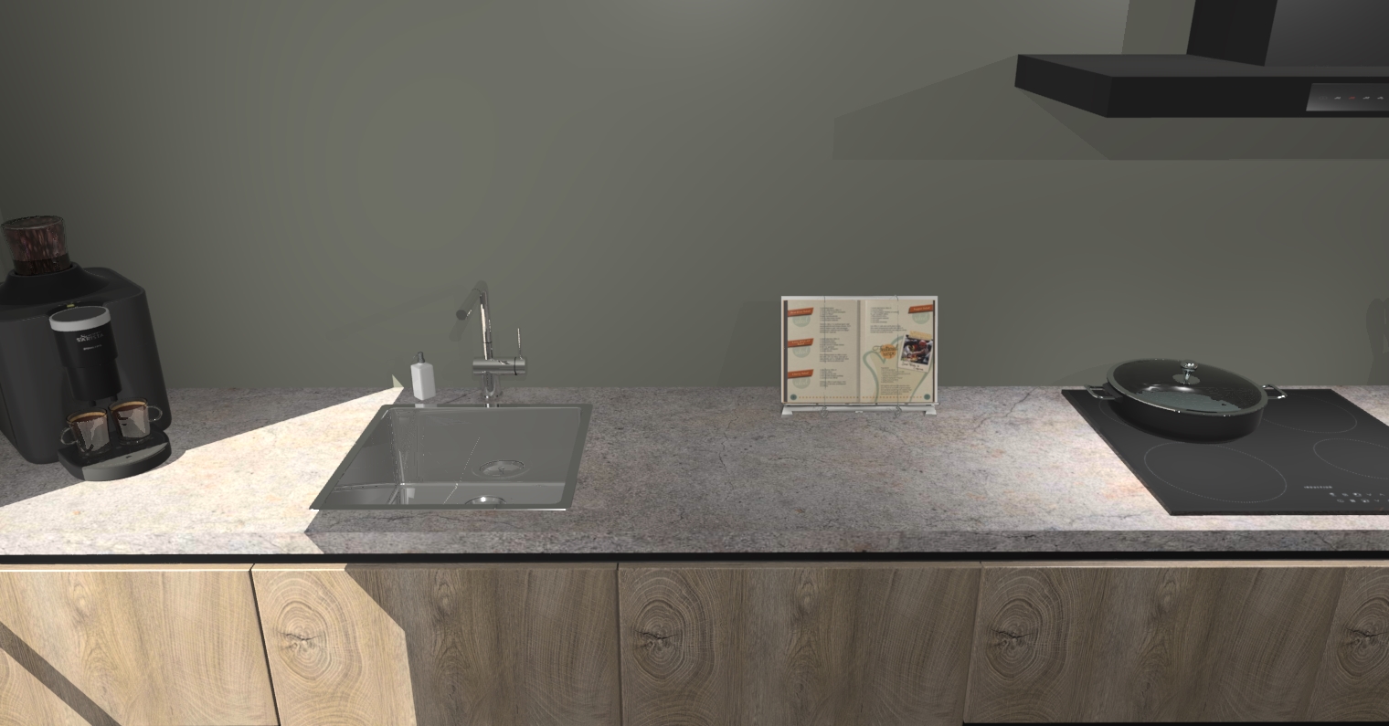 • De spoelbak is nog niet in gevreesd, dit dient tijdens het werk gedaan te worden