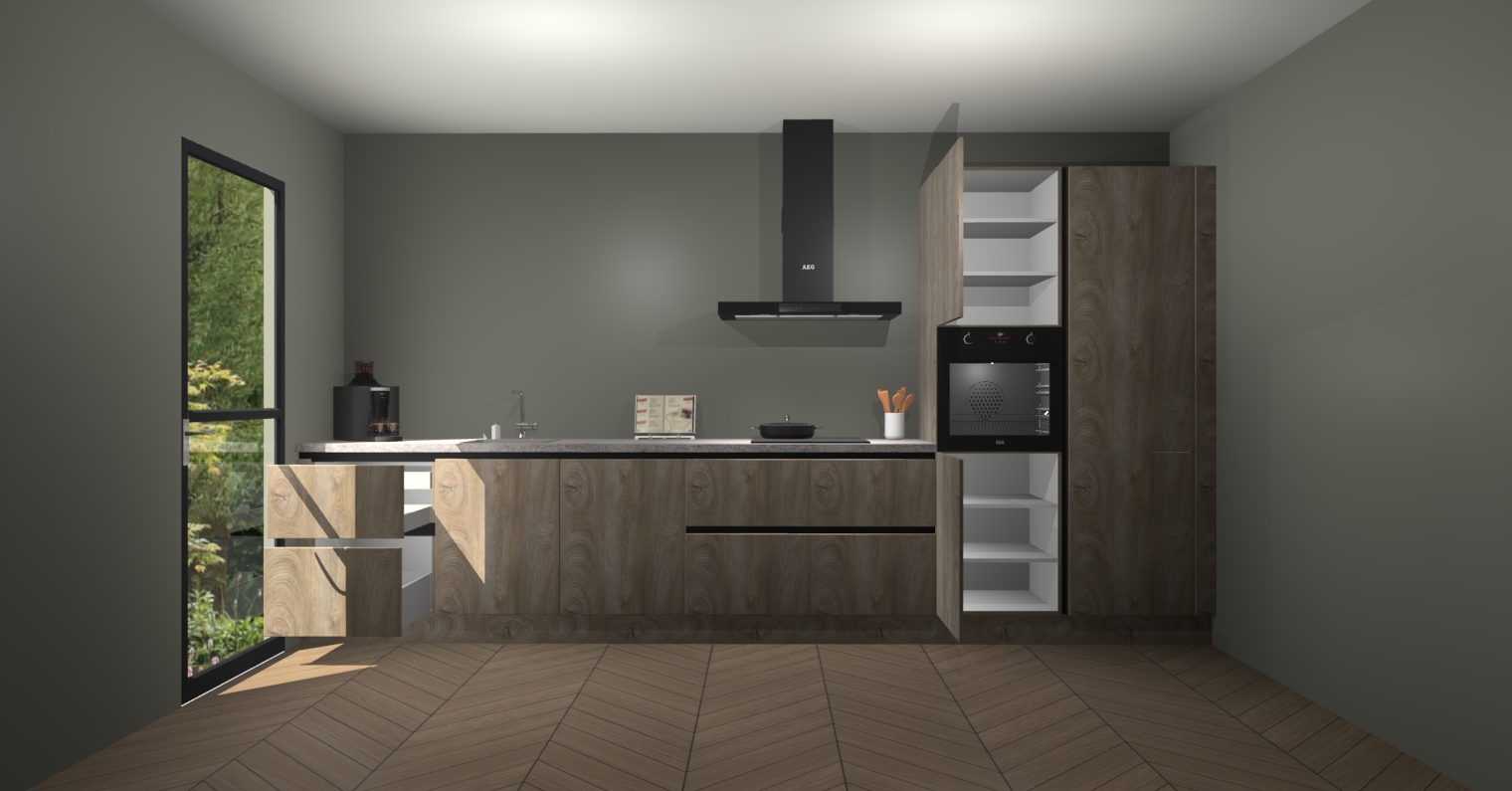De Cantaro Eiken greeploze keuken Leuven is de perfecte mix van modern en tijdloos design. Met zijn prachtige glazen deuren op de bovenkastjes voegt hij echt iets speciaals en unieks toe aan elke keuken. En met vijf ingebouwde apparaten inbegrepen - een oven, inductiekookplaat, afzuigkap, vaatwasser en koelkast - kunt u deze keuken echt helemaal van uzelf maken! U kunt na bestelling ook upgraden naar AEG voor een nog hogere kwaliteitservaring.