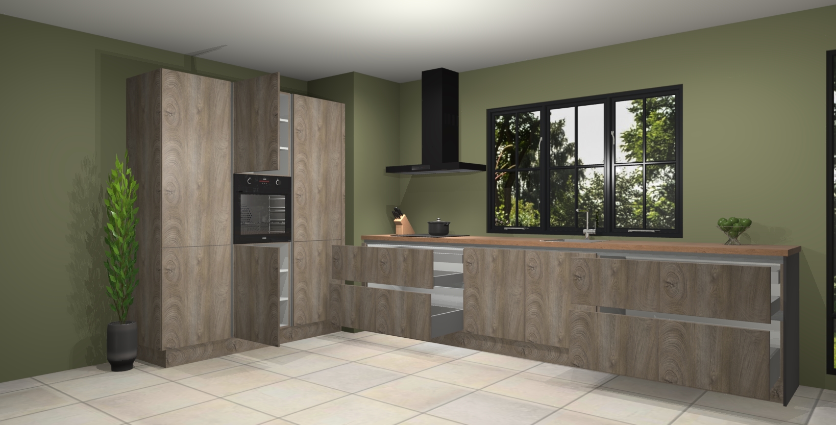 De Cantaro eiken keuken Marseille, een mooie en verbluffende toevoeging aan uw keuken, is een kunstwerk met zijn luxe design en unieke combinatie van Cantaro eiken met een houten blad. Geniet van eersteklas vakmanschap dat zorgt voor jarenlange betrouwbaarheid in een strak Europees hedendaags ontwerp.