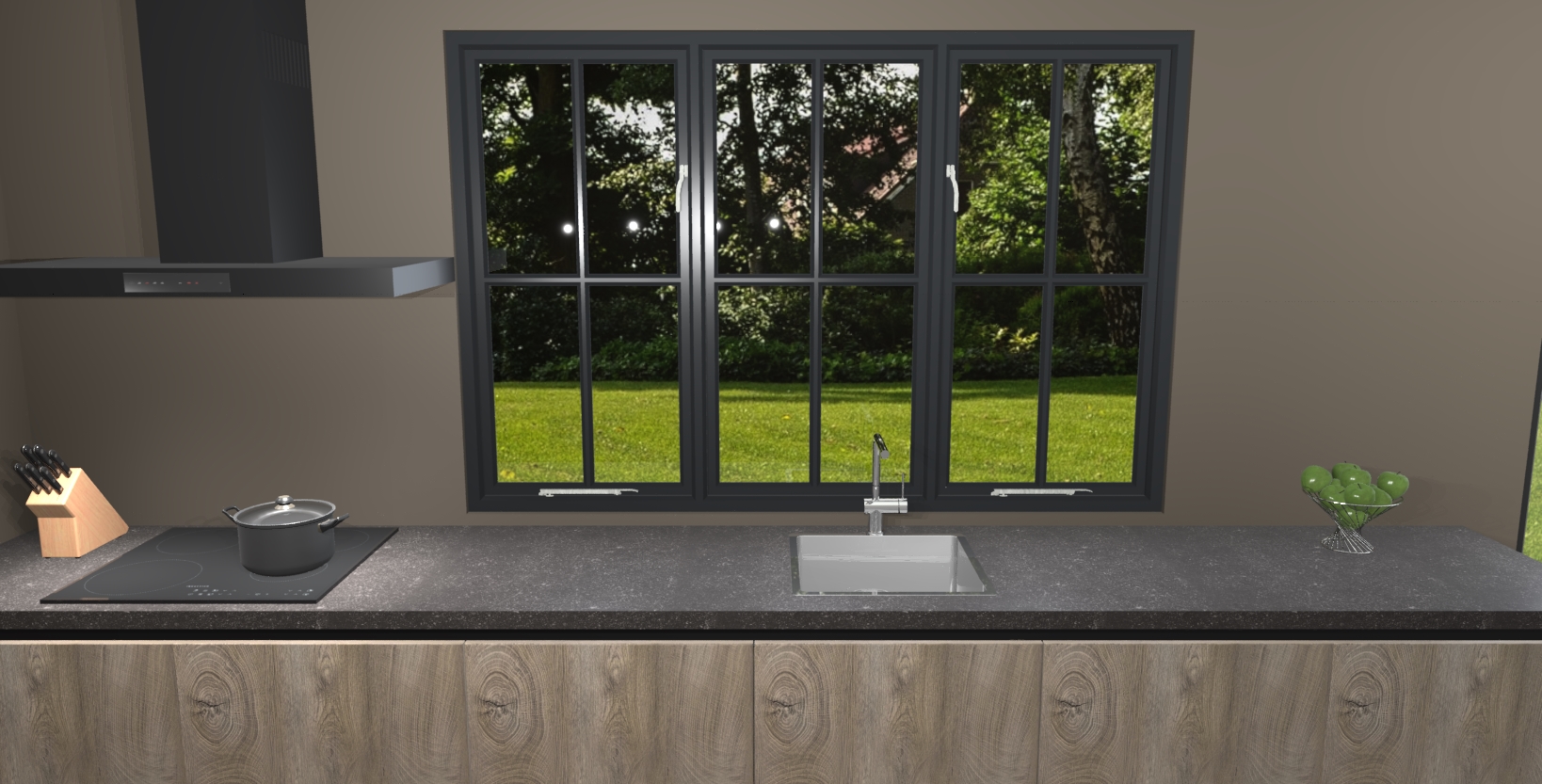 De softclose deuren openen en sluiten is ook heel eenvoudig - geniet van een moeiteloze keukenervaring, zelfs als er kinderen rondlopen. Voor extra gemak bij het plaatsen van uw bestelling bieden we ook een upgrade naar een kookplaat met geïntegreerde afzuiging.
