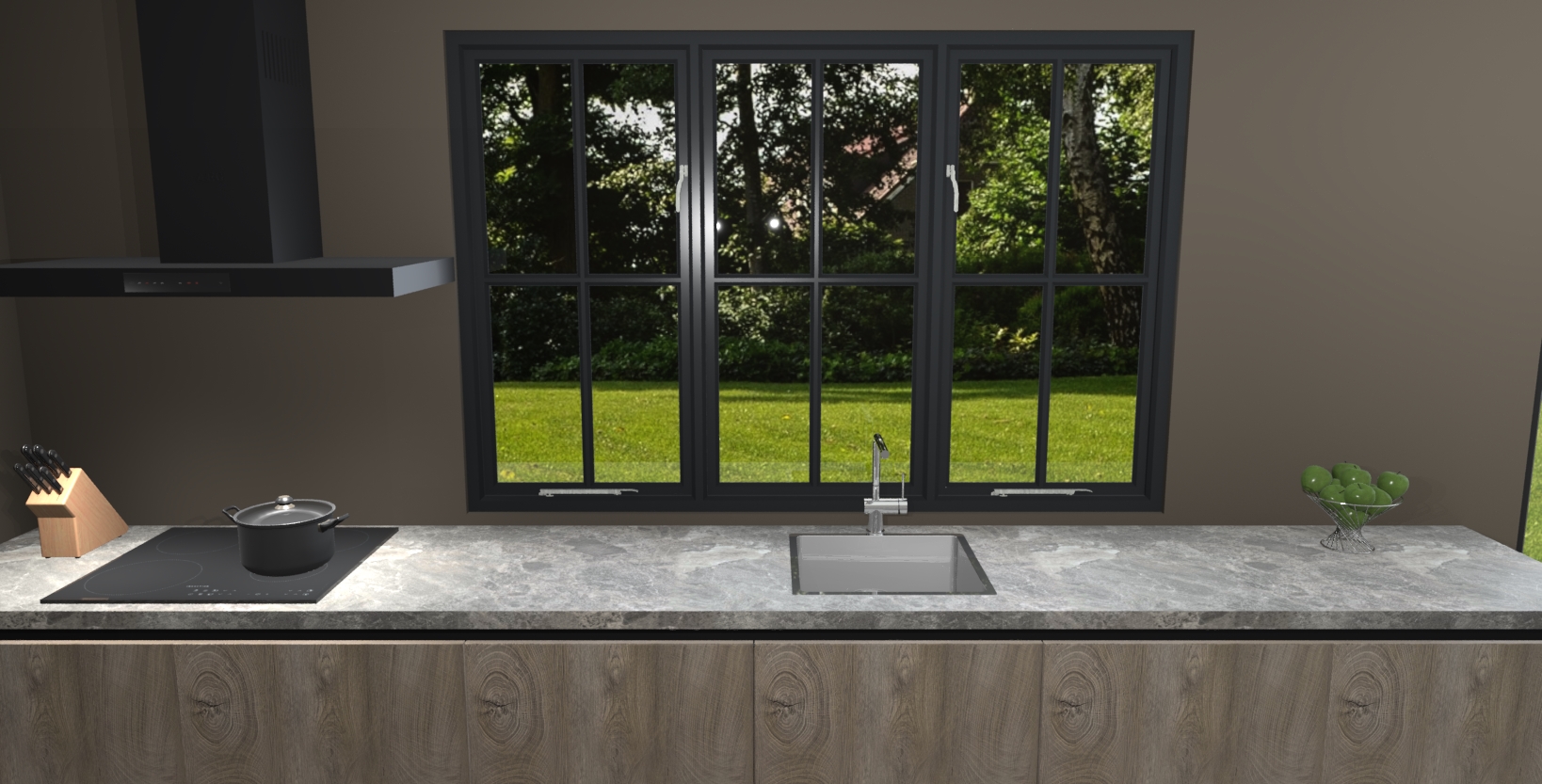 De softclose deuren openen en sluiten is ook heel eenvoudig - geniet van een moeiteloze keukenervaring, zelfs als er kinderen rondlopen. Voor extra gemak bij het plaatsen van uw bestelling bieden we ook een upgrade naar een kookplaat met geïntegreerde afzuiging.
