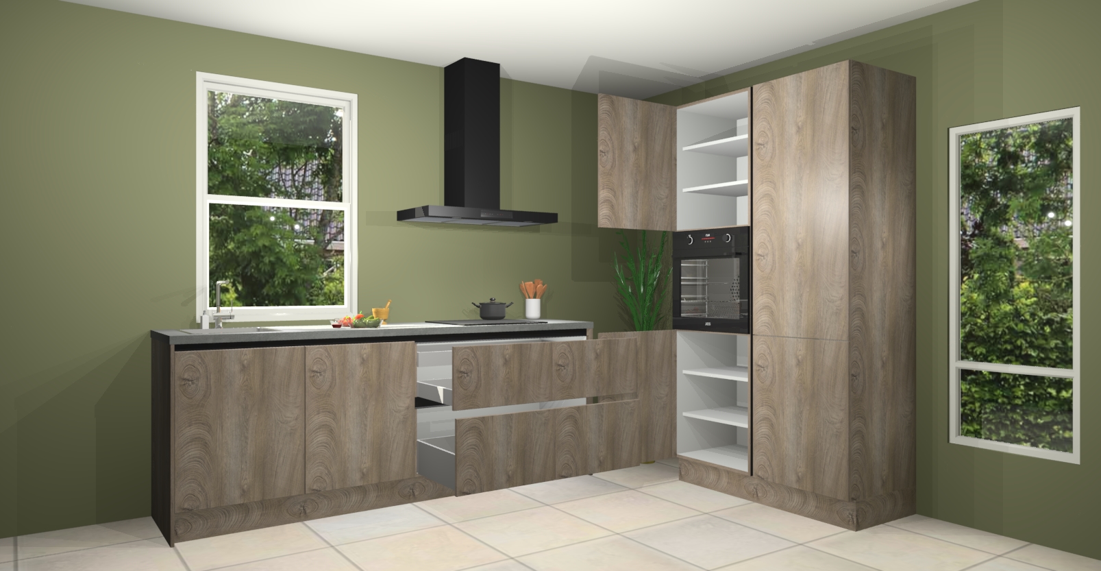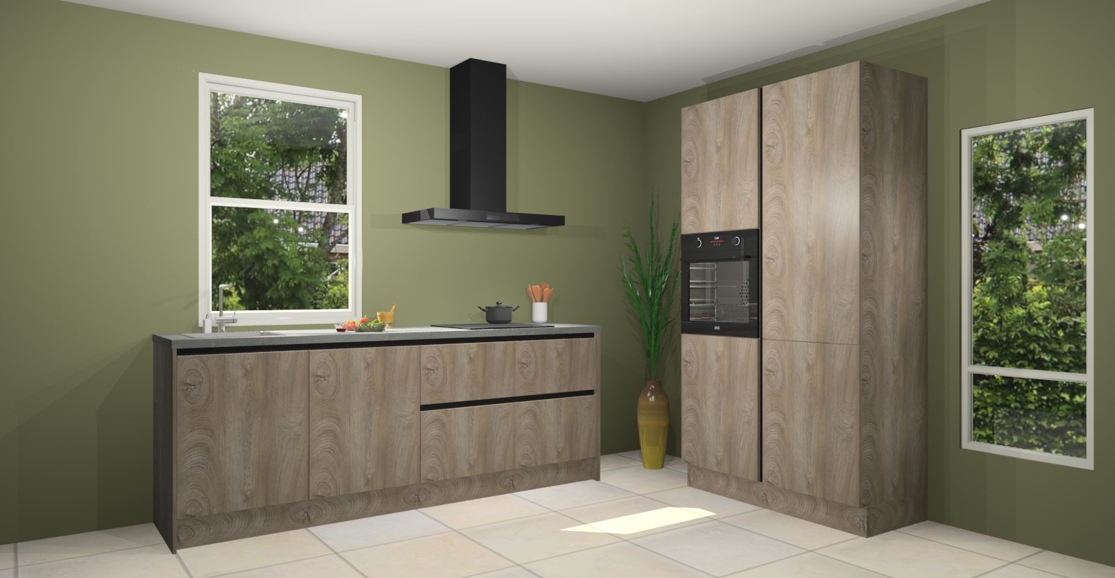De Cantaro eiken greeploze keuken Monaco heeft voldoende opbergruimte om uw keukenbenodigdheden georganiseerd en netjes te houden. Geniet van het gemak van de soft-close deuren, die deze stijlvolle look perfect afmaken. Maar dat is nog niet alles. Met de Cantaro eiken greeploze keuken Monaco krijgt u maar liefst 5 ingebouwde apparaten: een oven, inductiekookplaat, afzuigkap, vaatwasser en koelkast. Deze kunnen gemakkelijk worden geüpgraded naar AEG als ze besteld zijn.