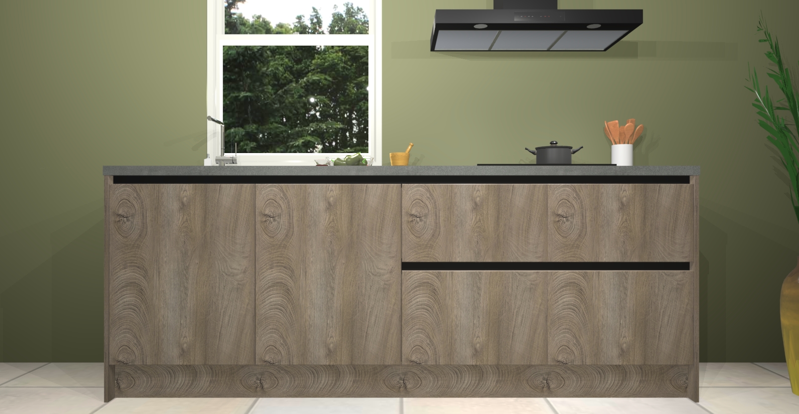 Ervaar het ultieme gevoel van warmte en gezelligheid in uw huis met de luxe Cantaro eiken greeploze keuken Monaco! Deze ongelooflijk sfeervolle houtlook straalt heerlijke warmte uit en tovert elke keuken om tot een gezellig familiecentrum. Breng uw dromen tot leven met deze unieke keuken, ontworpen voor moeiteloze luxe en functionaliteit.