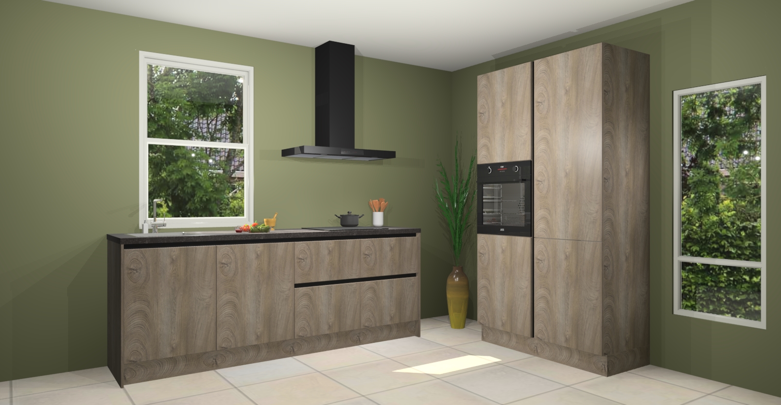 De Cantaro eiken greeploze keuken Monaco heeft voldoende opbergruimte om uw keukenbenodigdheden georganiseerd en netjes te houden. Geniet van het gemak van de soft-close deuren, die deze stijlvolle look perfect afmaken. Maar dat is nog niet alles. Met de Cantaro eiken greeploze keuken Monaco krijgt u maar liefst 5 ingebouwde apparaten: een oven, inductiekookplaat, afzuigkap, vaatwasser en koelkast. Deze kunnen gemakkelijk worden geüpgraded naar AEG als ze besteld zijn.