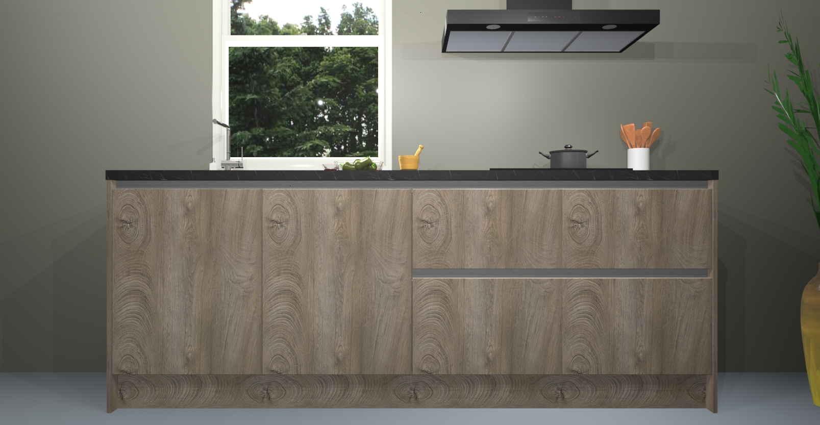 Ervaar het ultieme gevoel van warmte en gezelligheid in uw huis met de luxe Cantaro eiken greeploze keuken Monaco! Deze ongelooflijk sfeervolle houtlook straalt heerlijke warmte uit en tovert elke keuken om tot een gezellig familiecentrum. Breng uw dromen tot leven met deze unieke keuken, ontworpen voor moeiteloze luxe en functionaliteit.
