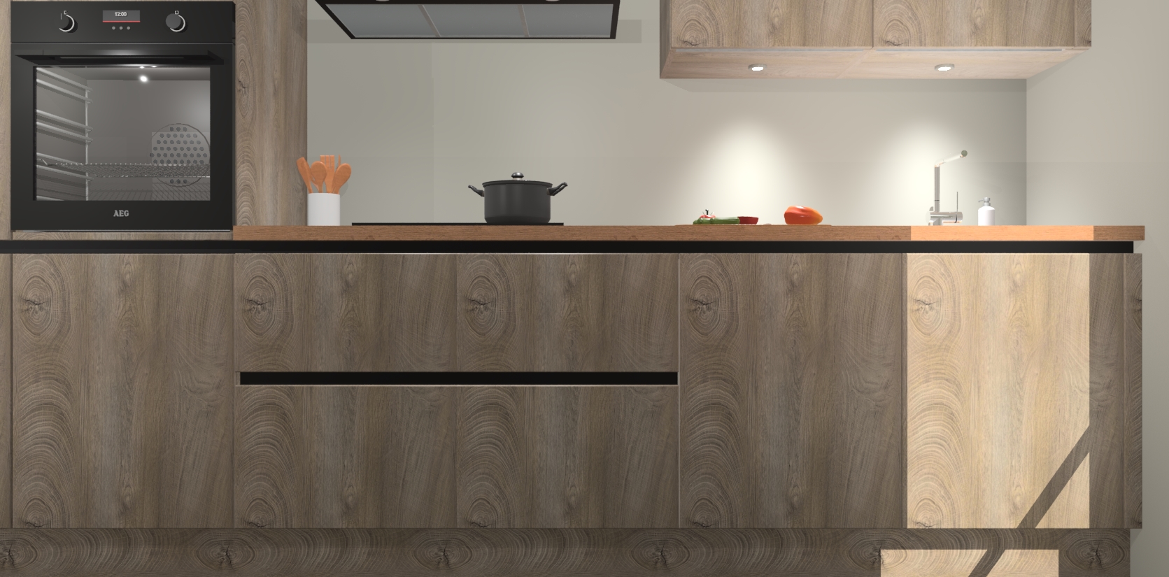 Inclusief plinten, stelpoten en werkblad