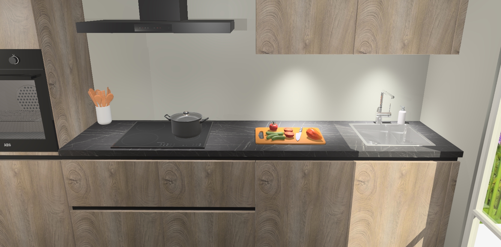 - Uitsparing van kookplaat, spoelbak en kraan dient u zelf te verzorgen.
