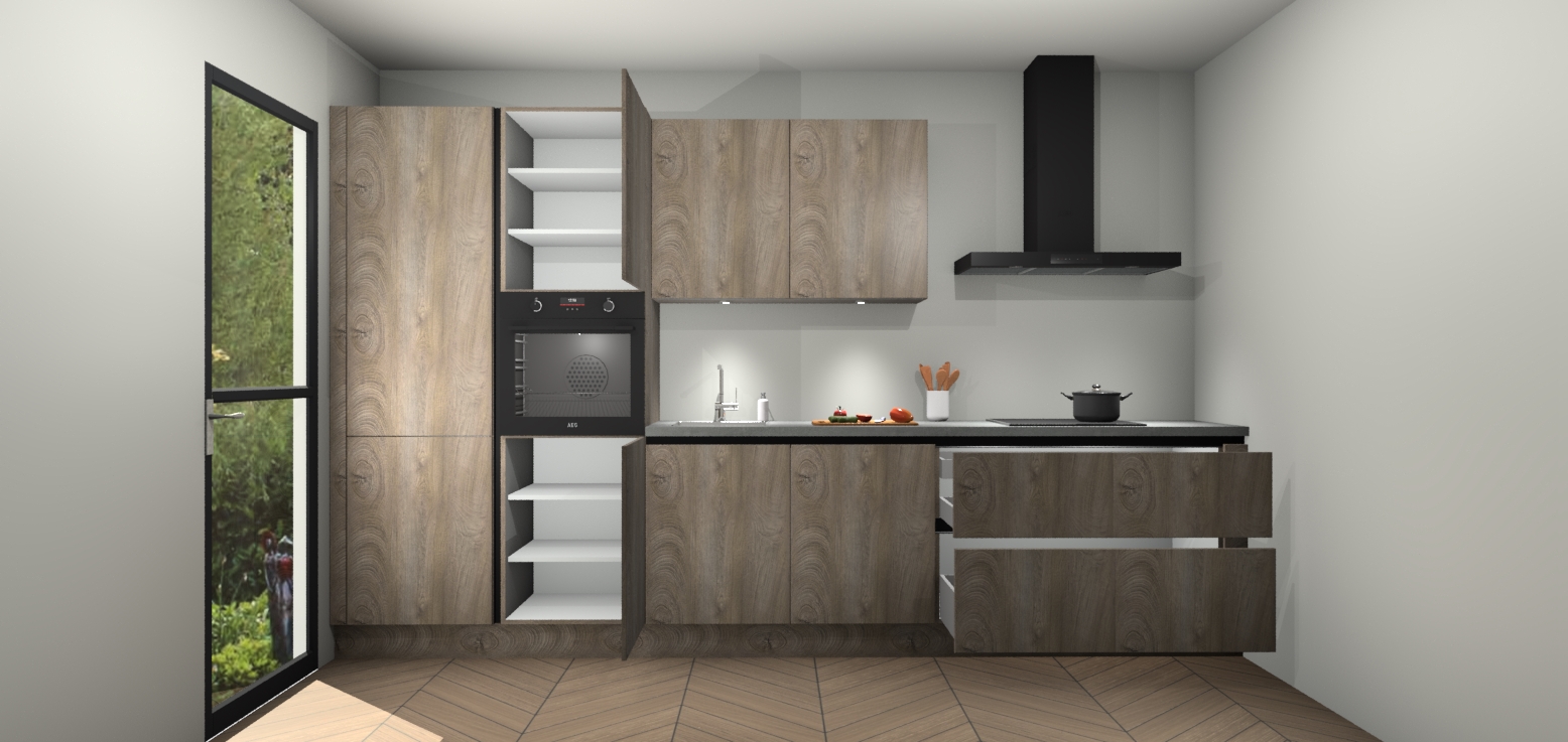 In deze box zijn alle kleuren verzameld van de deuren en werkbladen. Vraag de gratis kleurenbox aan en kijk thuis rustig verder!